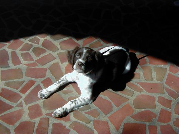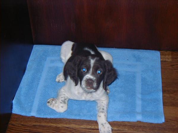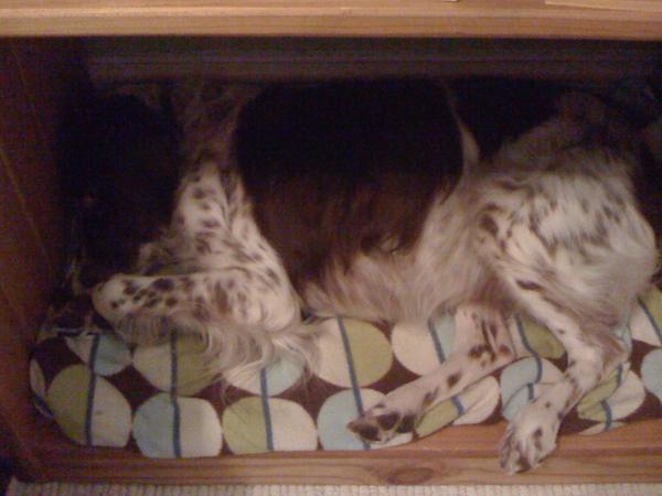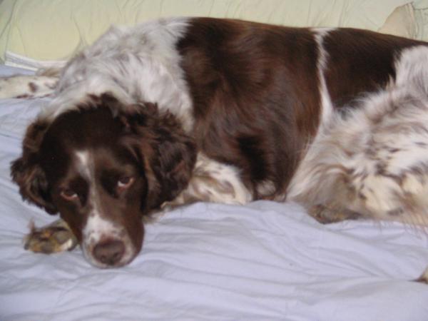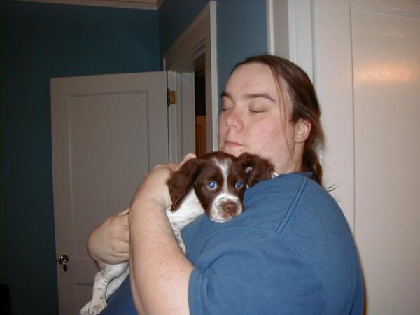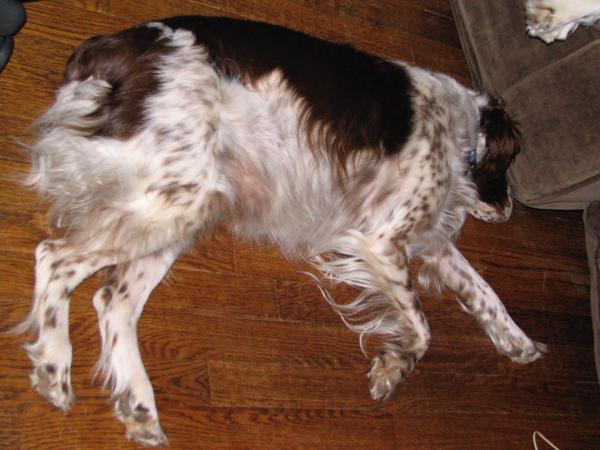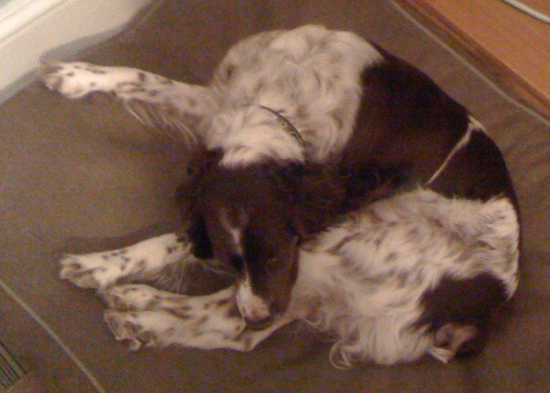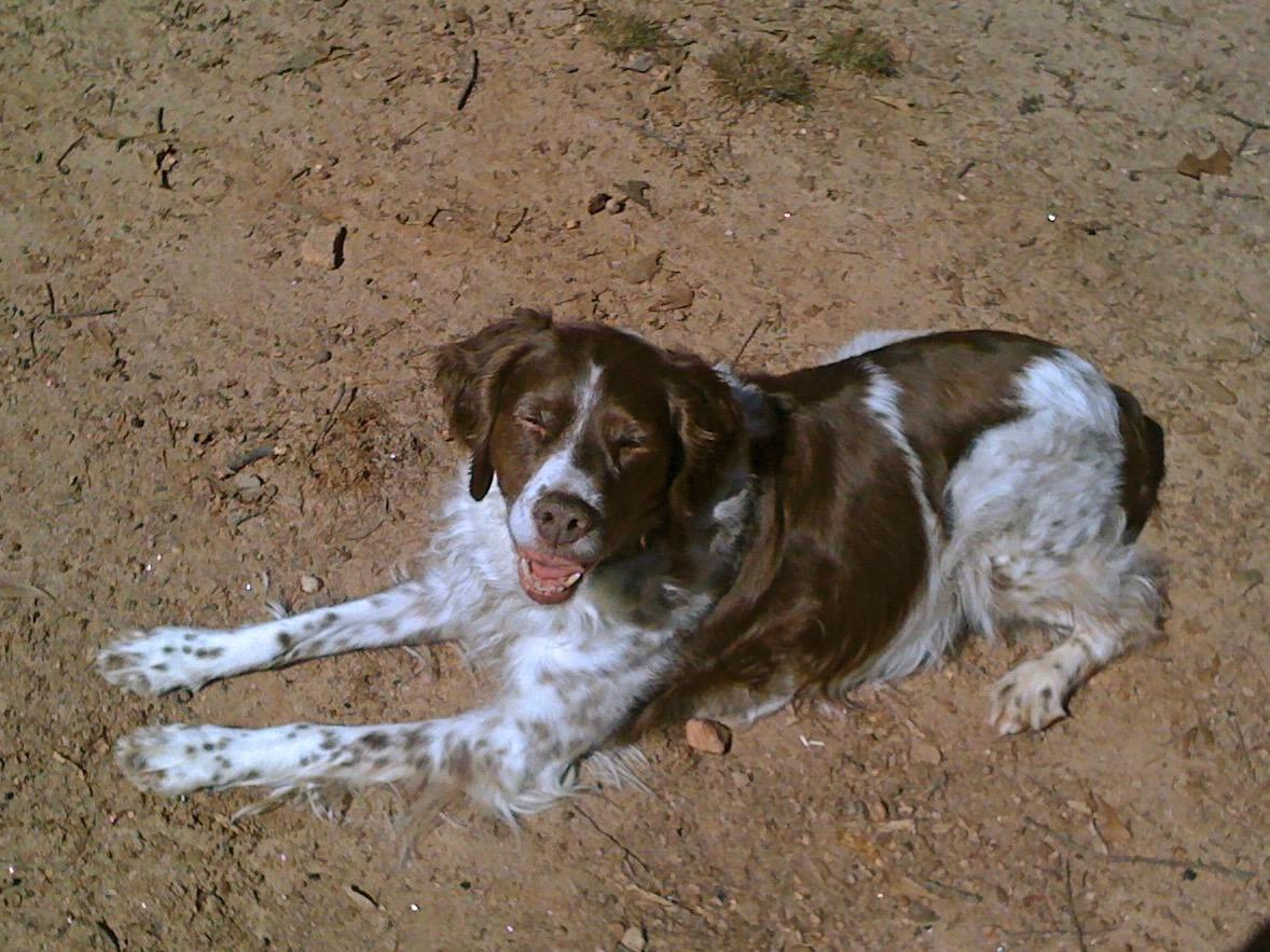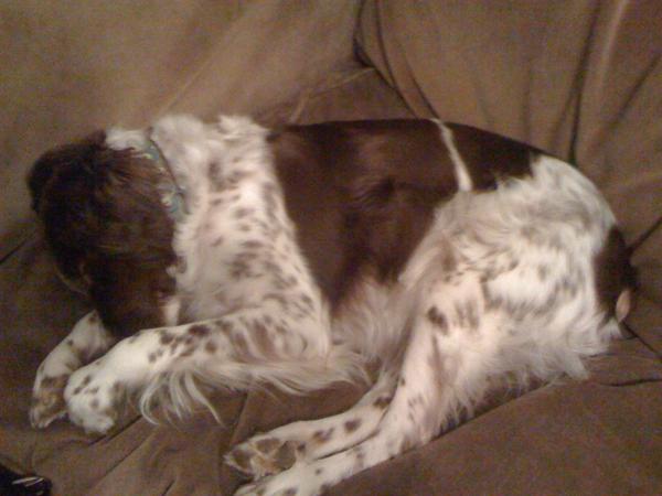 Abbey was our first Brittany as a couple; the kids were around 8 and we found someone locally who had a litter of babies on offer. Her mom and dad were both gorgeous, sweet dogs and she was no different. Abbey was with us until around 2012, when her heart gave out. She was the best, sweetest baby girl we could have ever asked for. Those spots were heartmelting.