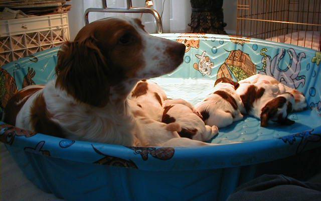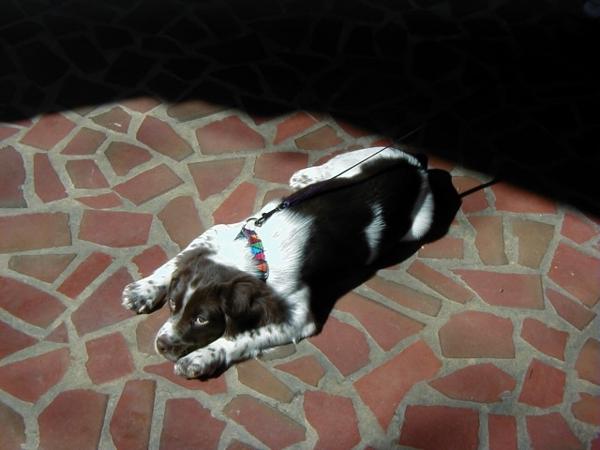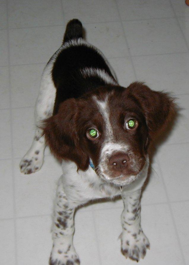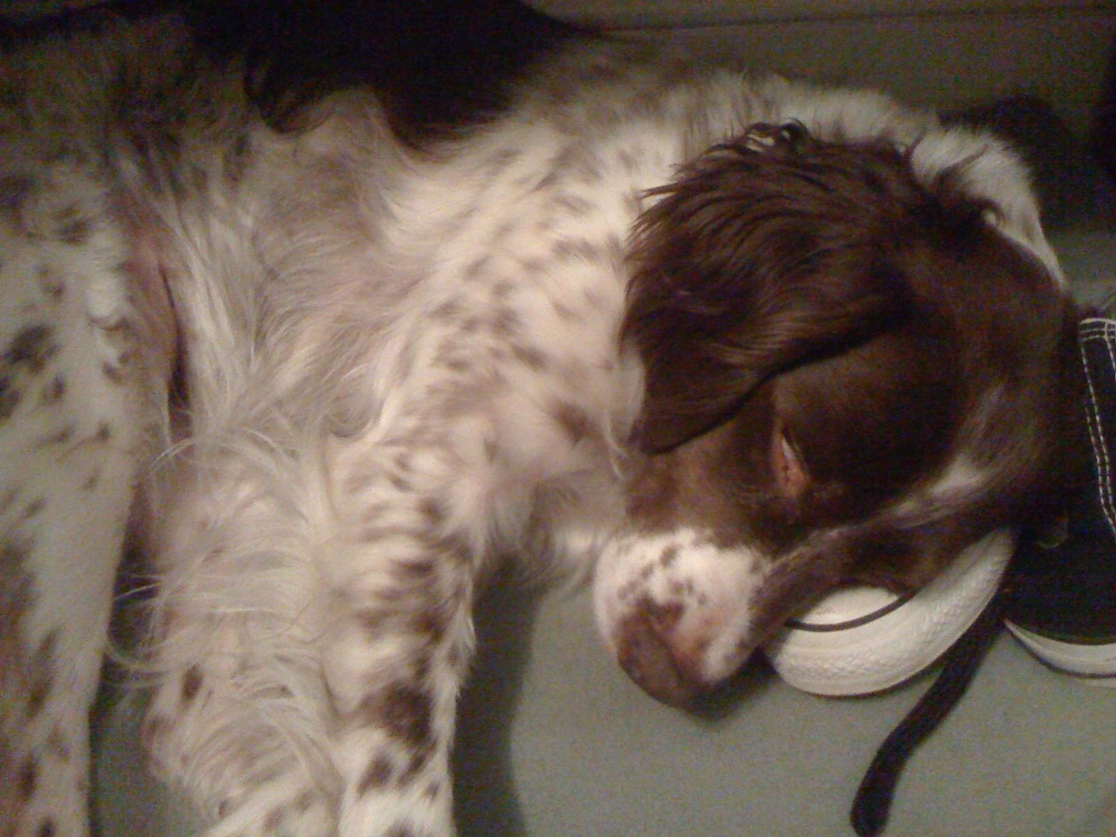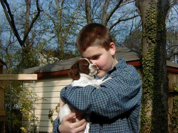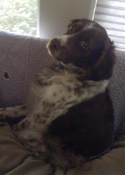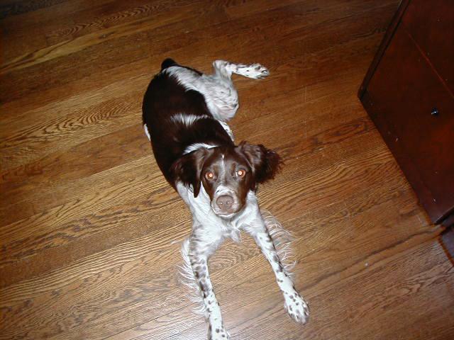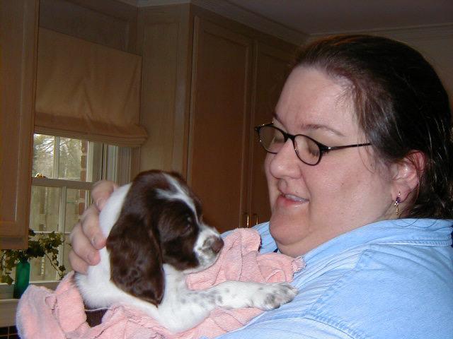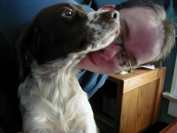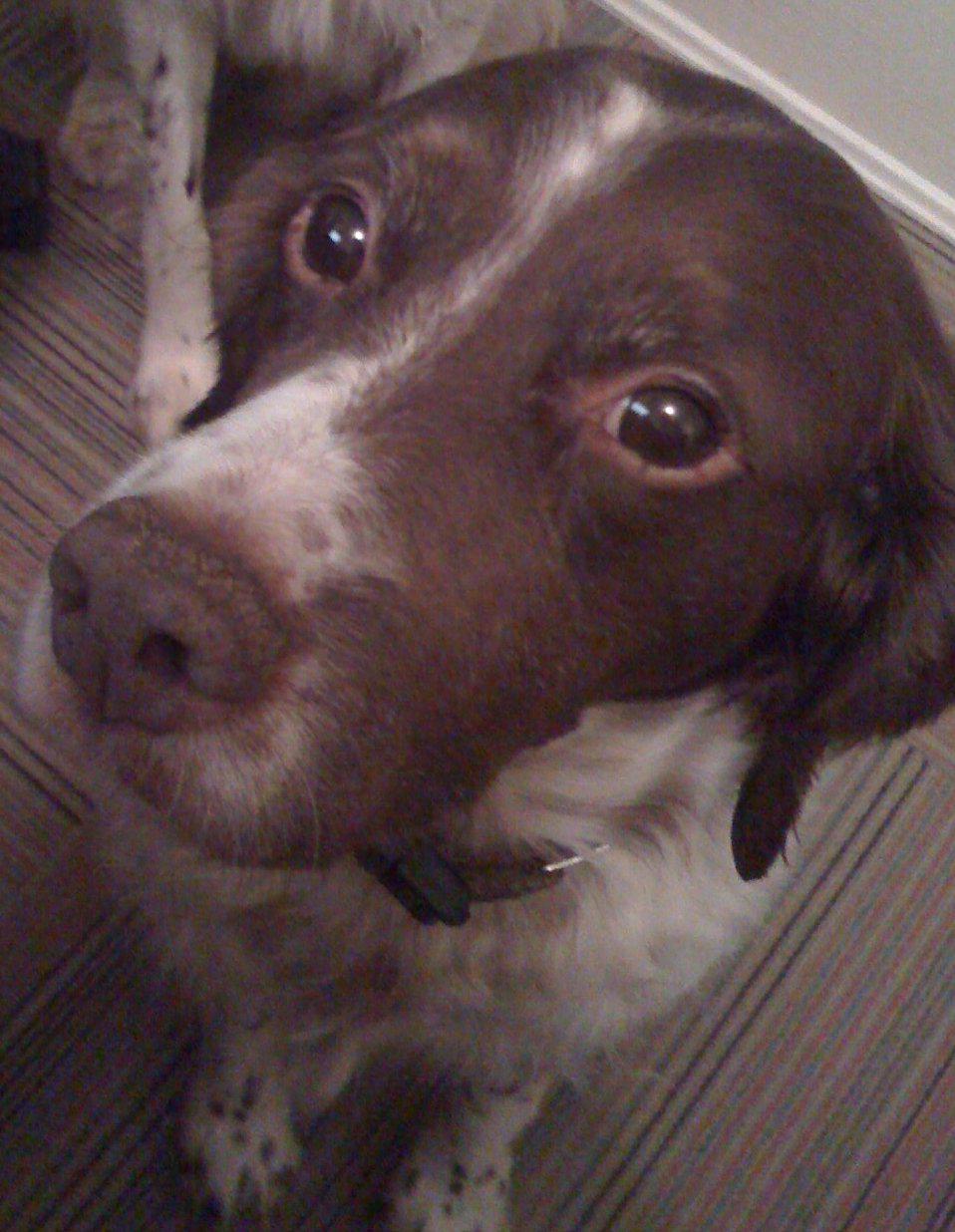 Abbey was our first Brittany as a couple; the kids were around 8 and we found someone locally who had a litter of babies on offer. Her mom and dad were both gorgeous, sweet dogs and she was no different. Abbey was with us until around 2012, when her heart gave out. She was the best, sweetest baby girl we could have ever asked for. Those spots were heartmelting.