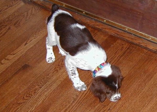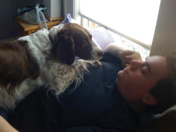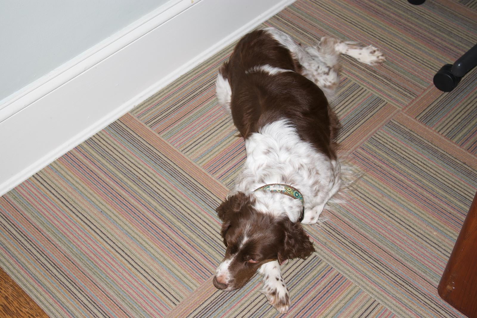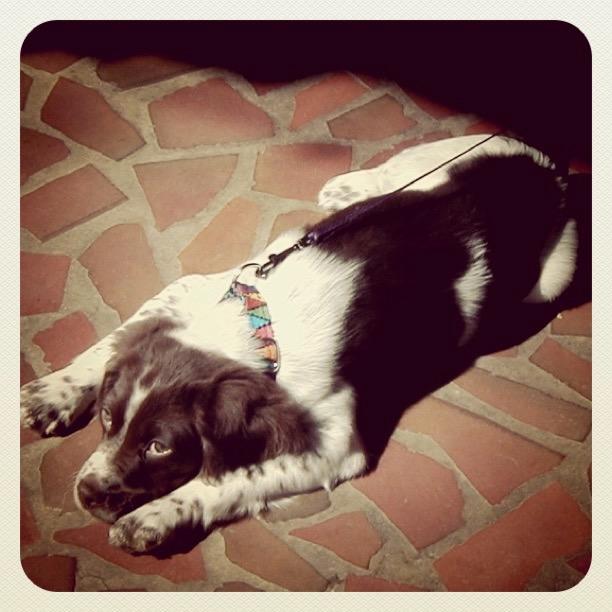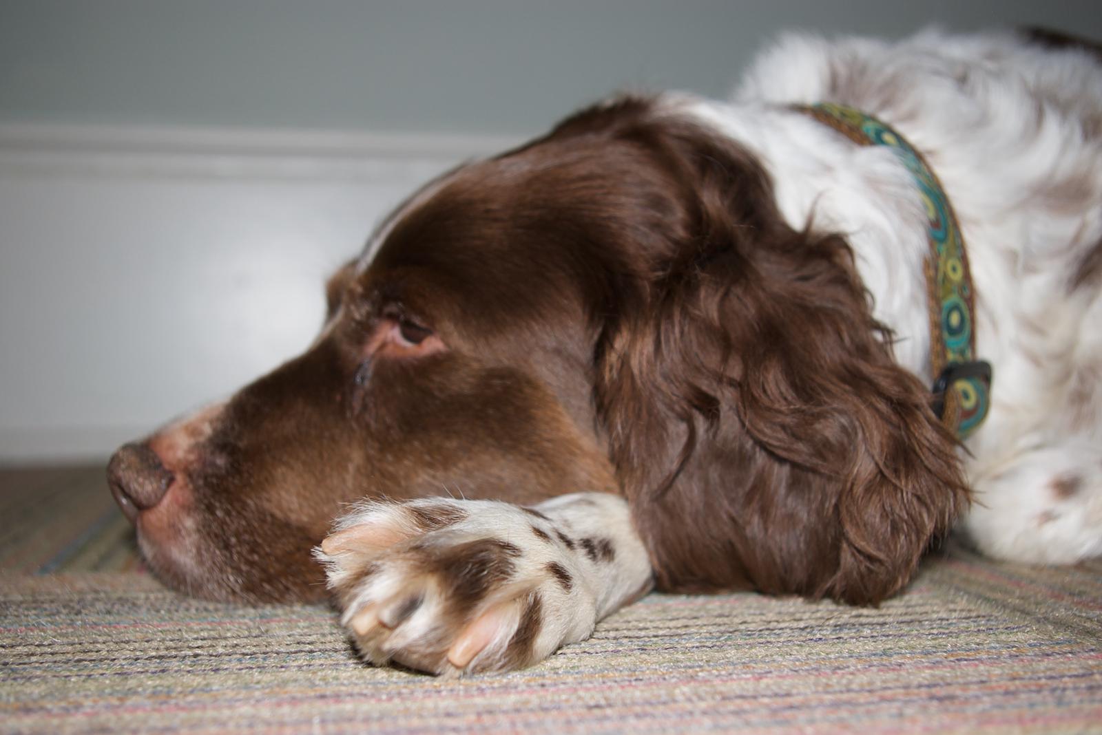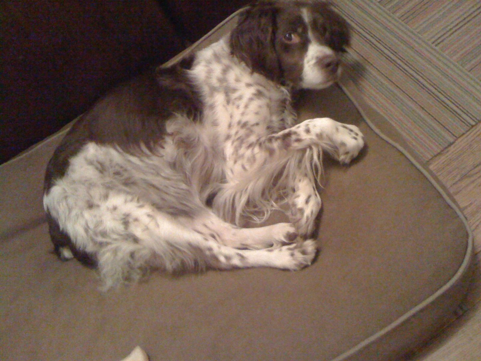 Abbey was our first Brittany as a couple; the kids were around 8 and we found someone locally who had a litter of babies on offer. Her mom and dad were both gorgeous, sweet dogs and she was no different. Abbey was with us until around 2012, when her heart gave out. She was the best, sweetest baby girl we could have ever asked for. Those spots were heartmelting.
