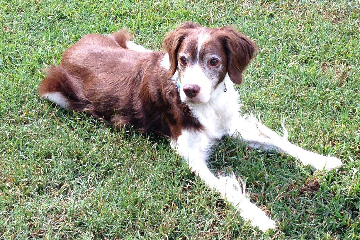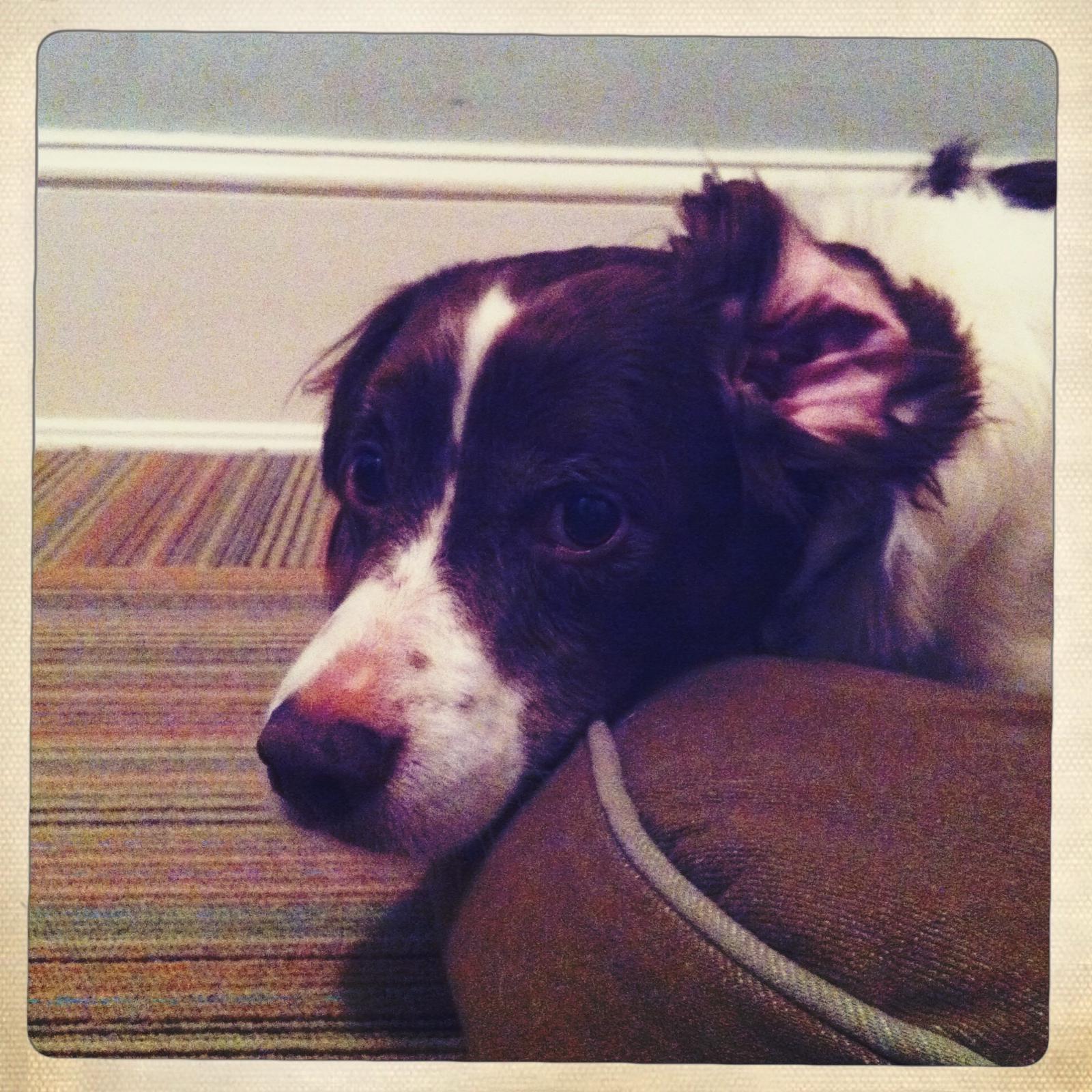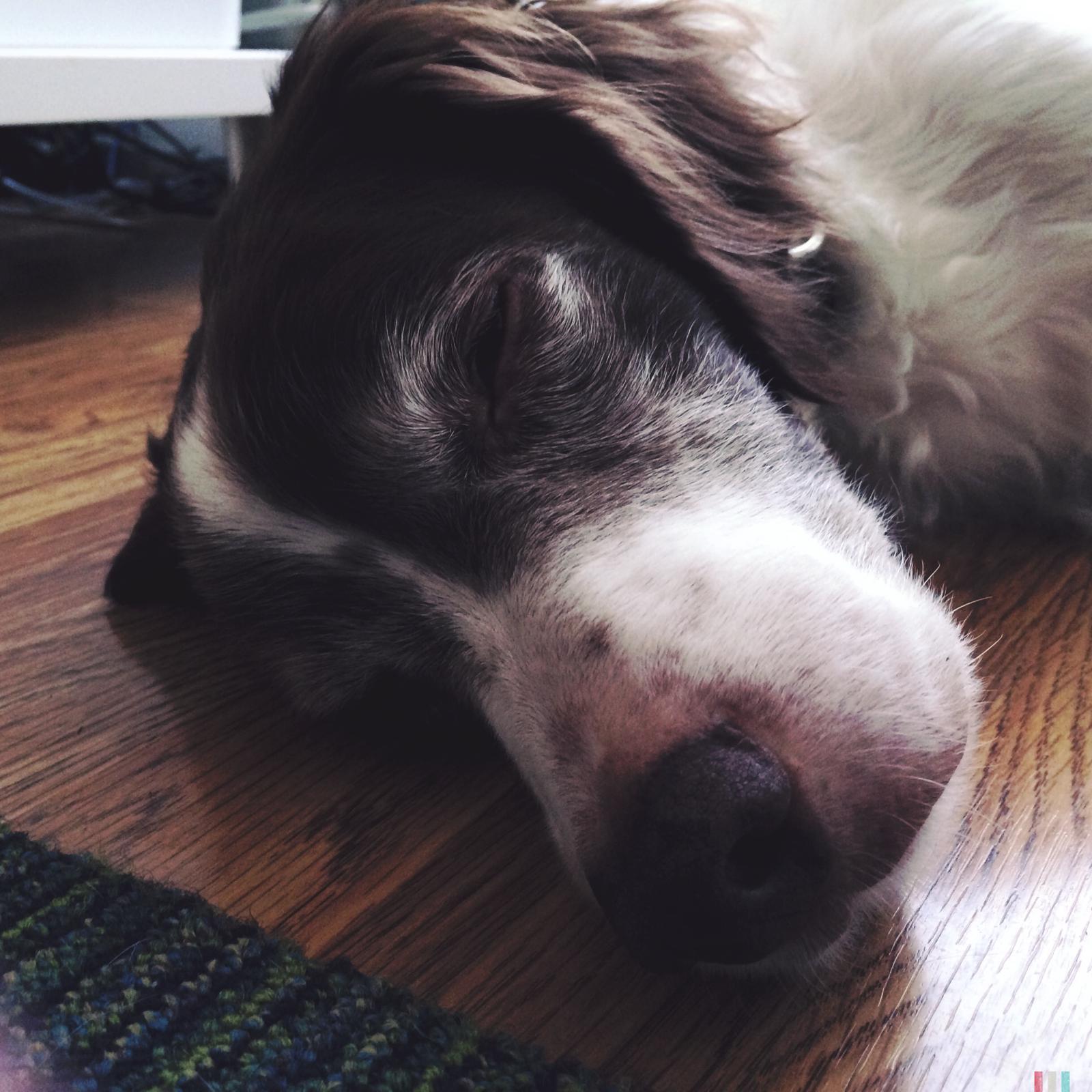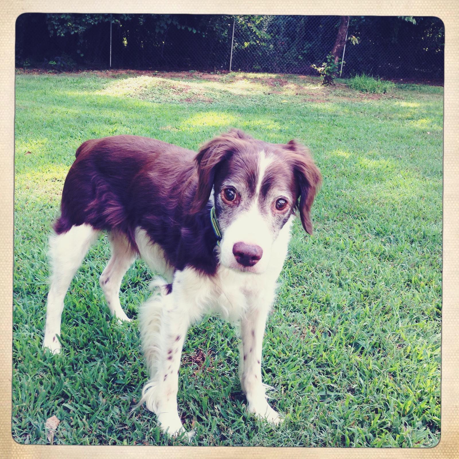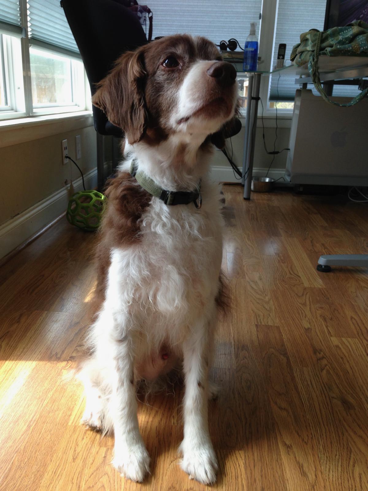 Alton was our second, named for the famous, local Food Network star Alton Brown, for his large amount of brown on his back. Alton was the pentultimate puppy buddy, he never let anything get him down. At around age 7, he developed an autoimmune condition known as SARDS, in which the body’s own immune system attacks and destroys the retinas leading to permanent blindness. Throughout that transition and for the rest of his life, Alton was both an inspiration to us all about turning life’s lemons into lemonade and a real trooper. A mentor to our foster Jessie, Alton would reliably, at 6 o’clock every day, hop down from our bed, go collect Jessie (also blind) and lead her to dinner.