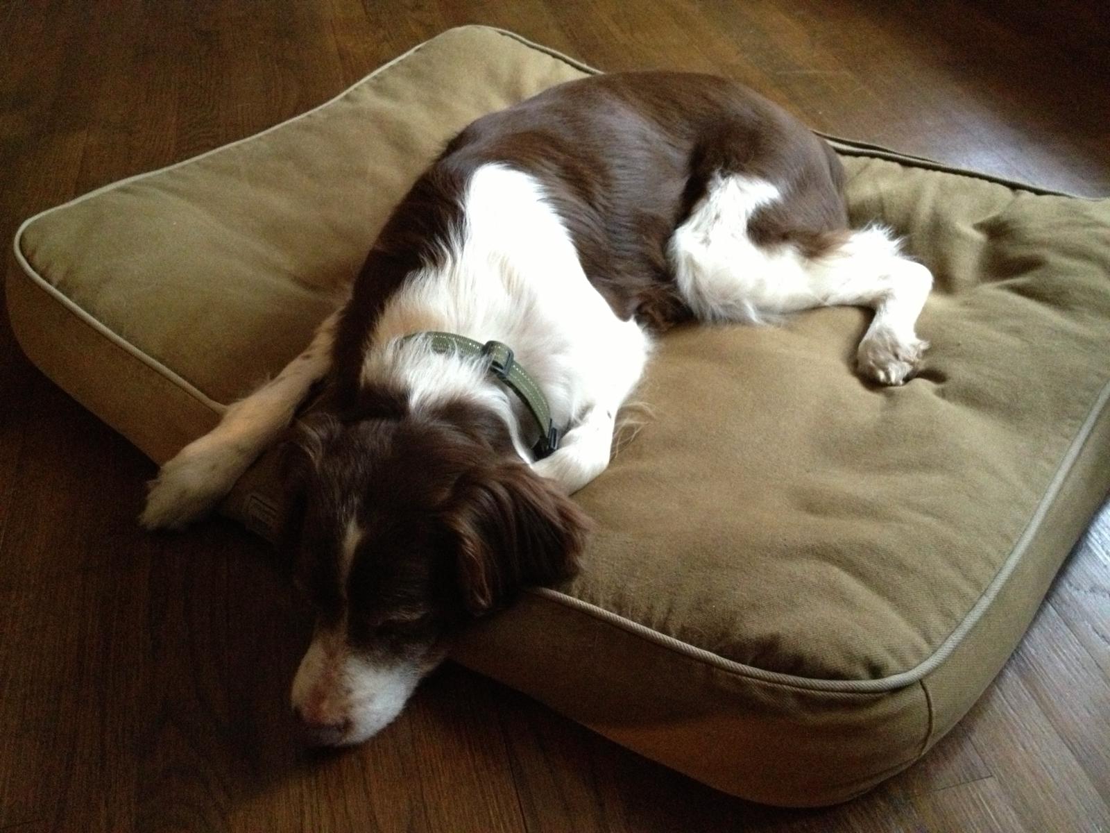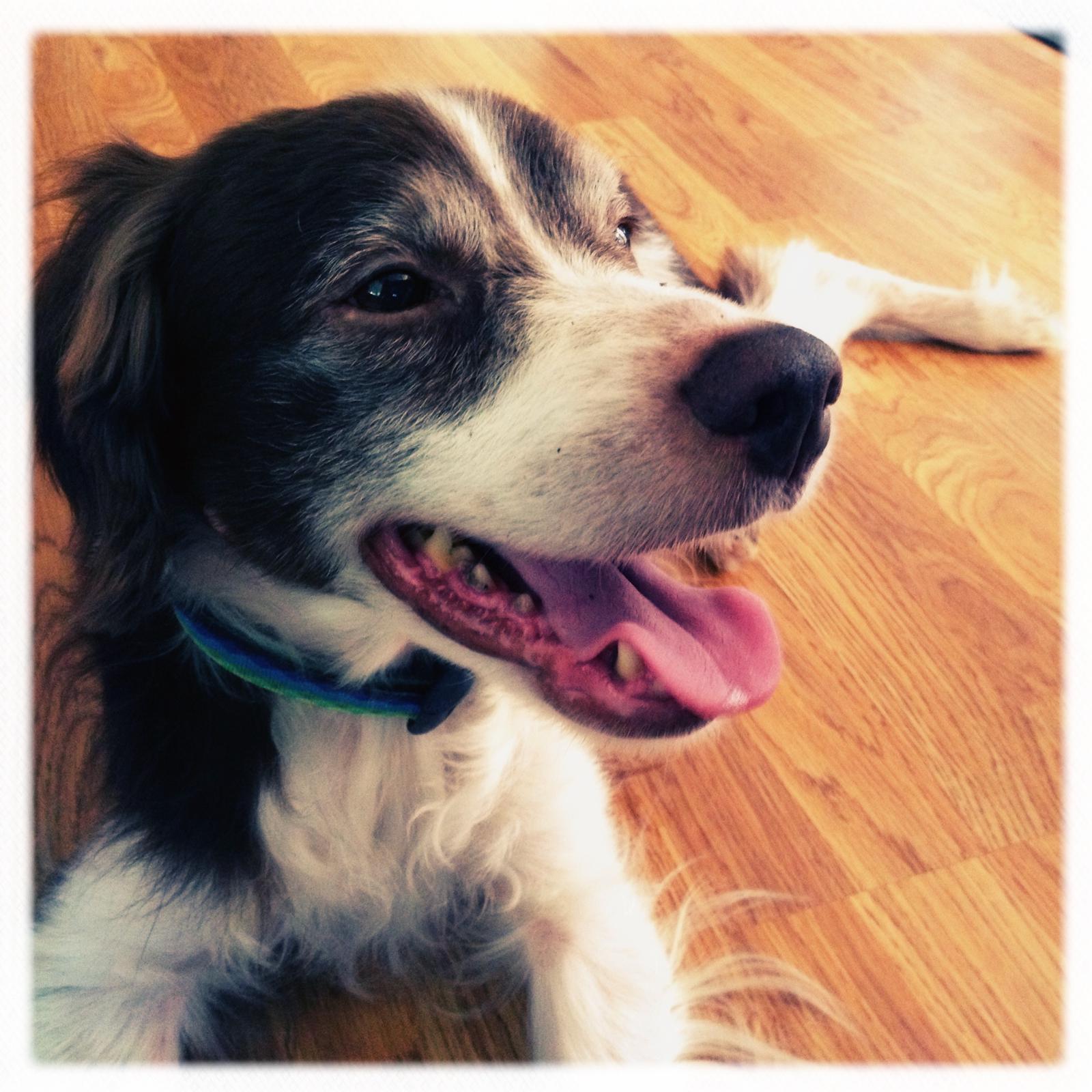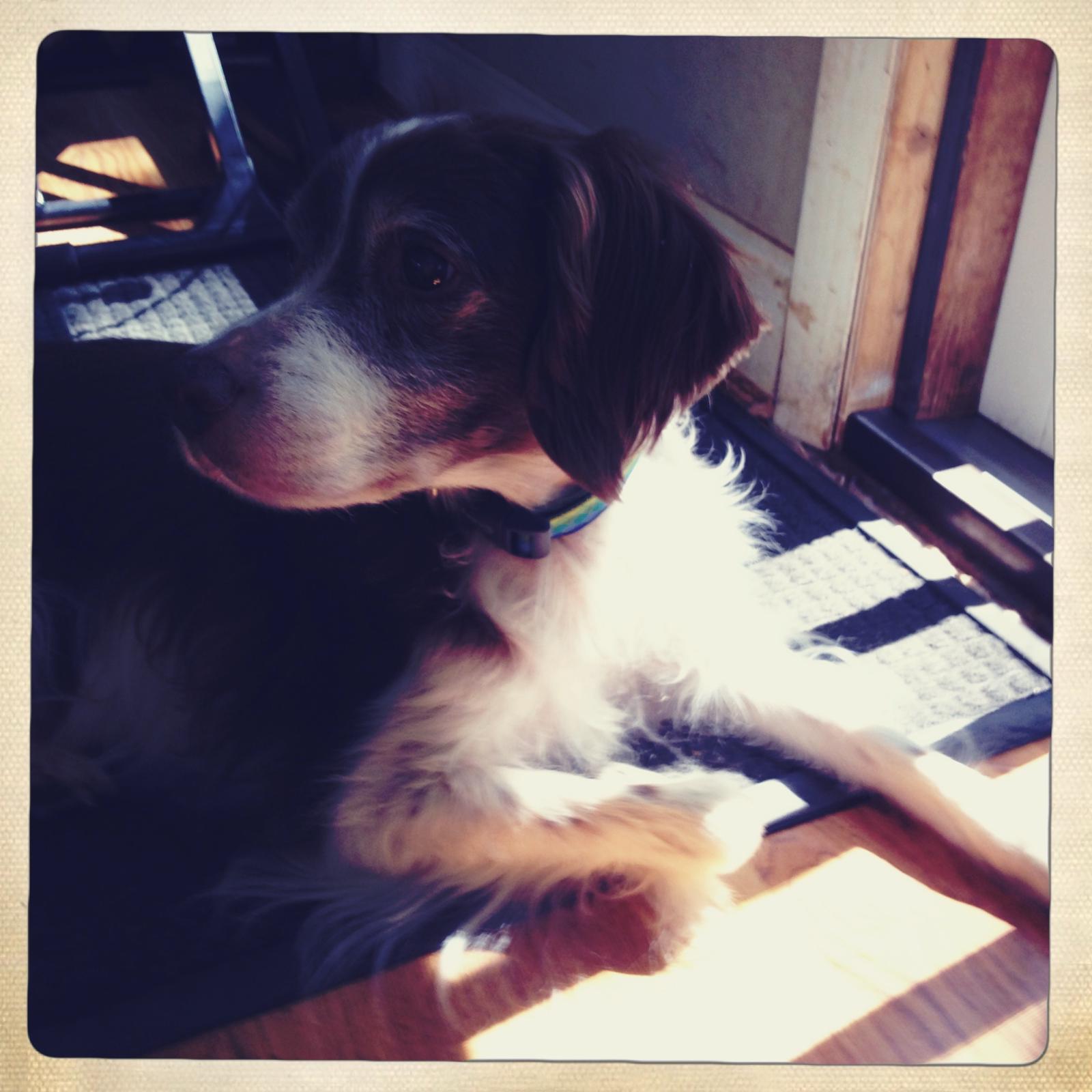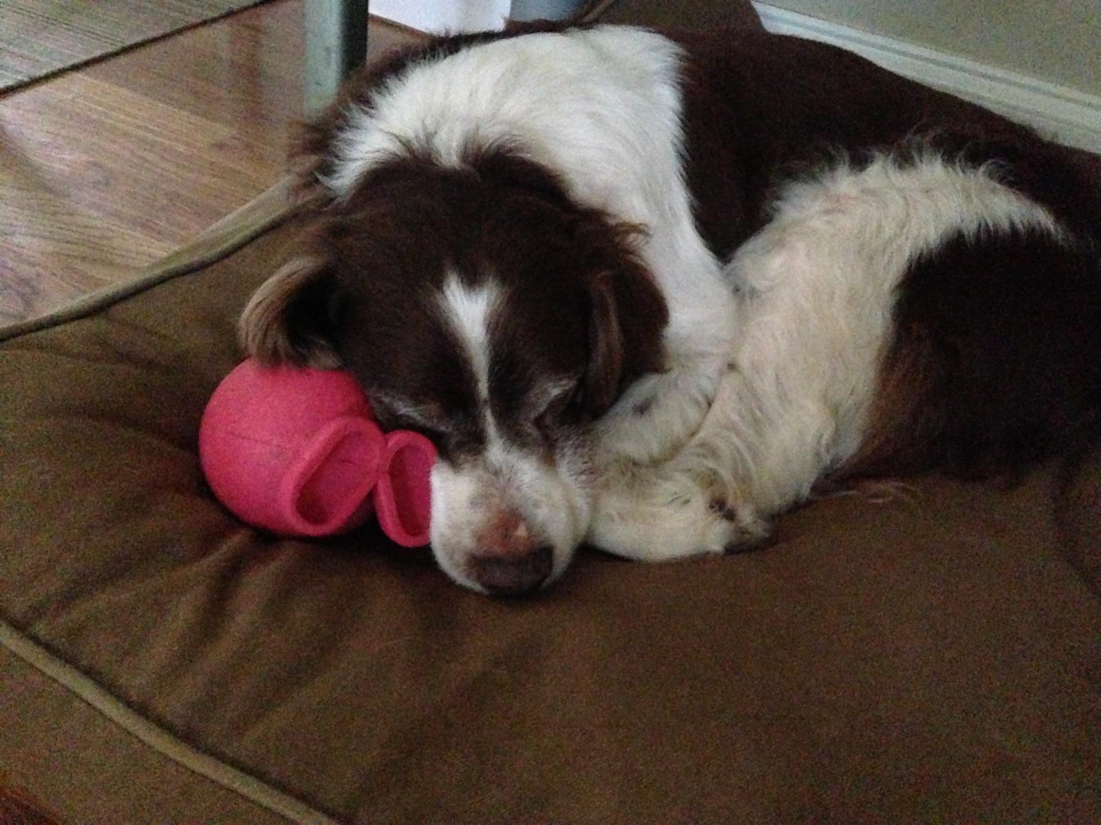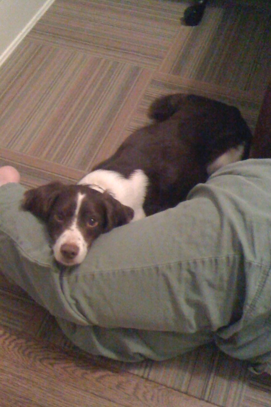 Alton was our second, named for the famous, local Food Network star Alton Brown, for his large amount of brown on his back. Alton was the pentultimate puppy buddy, he never let anything get him down. At around age 7, he developed an autoimmune condition known as SARDS, in which the body’s own immune system attacks and destroys the retinas leading to permanent blindness. Throughout that transition and for the rest of his life, Alton was both an inspiration to us all about turning life’s lemons into lemonade and a real trooper. A mentor to our foster Jessie, Alton would reliably, at 6 o’clock every day, hop down from our bed, go collect Jessie (also blind) and lead her to dinner.