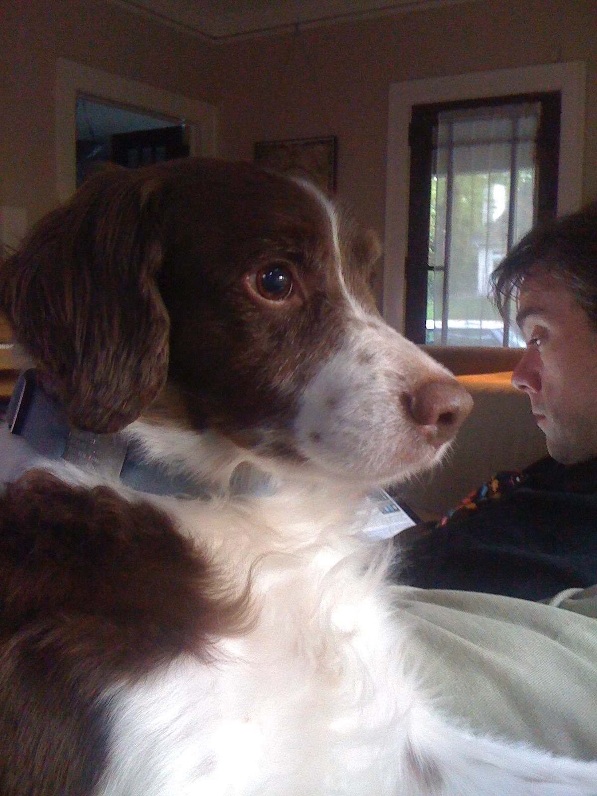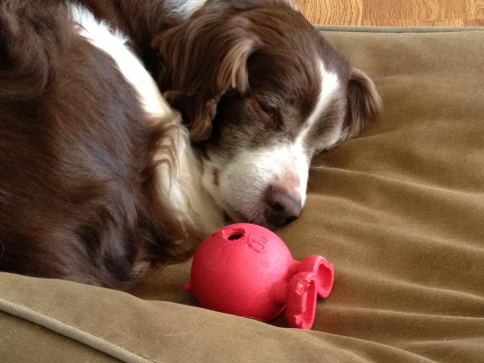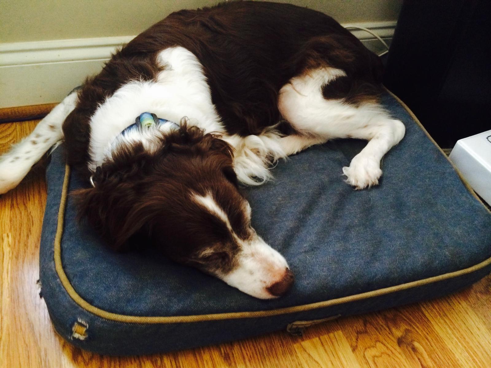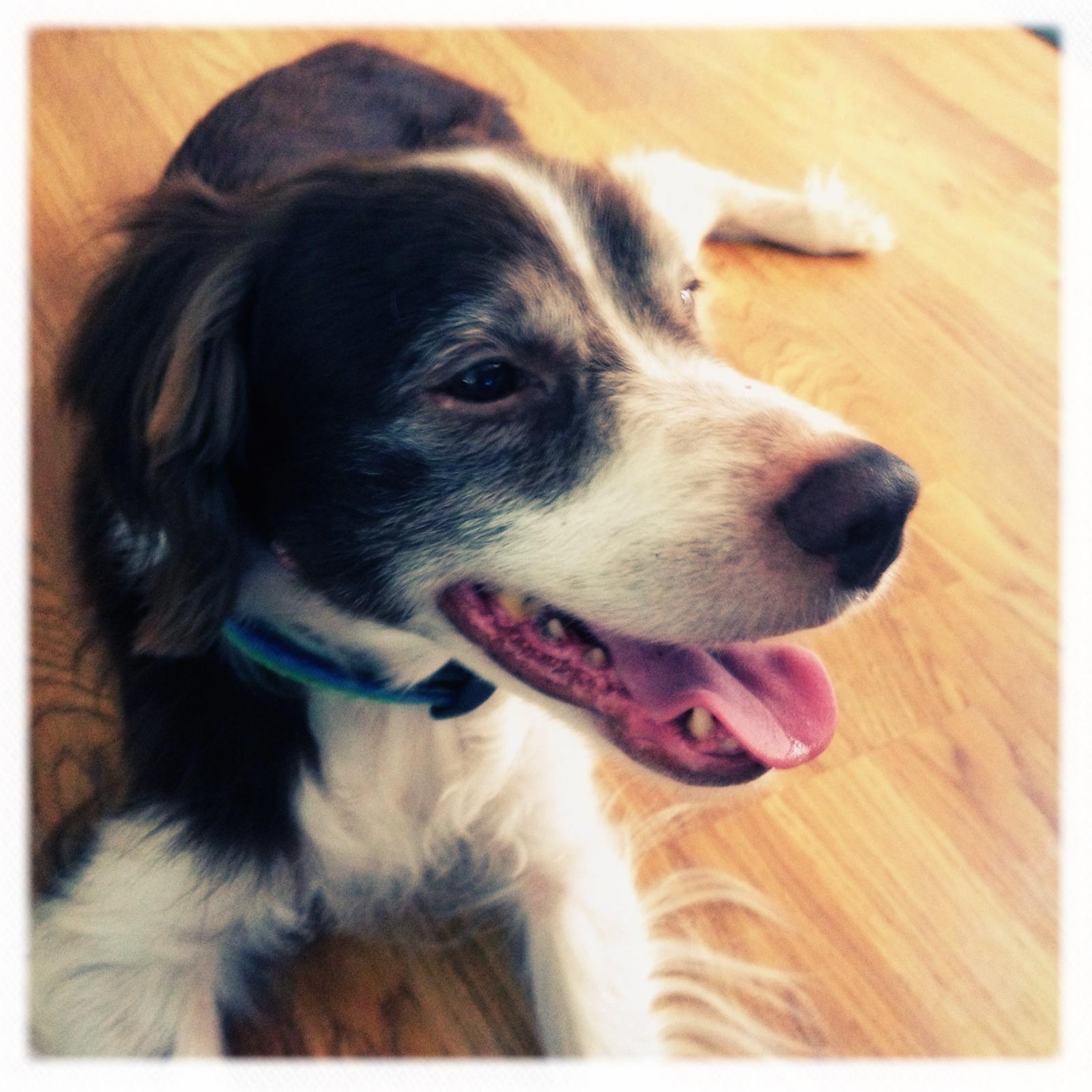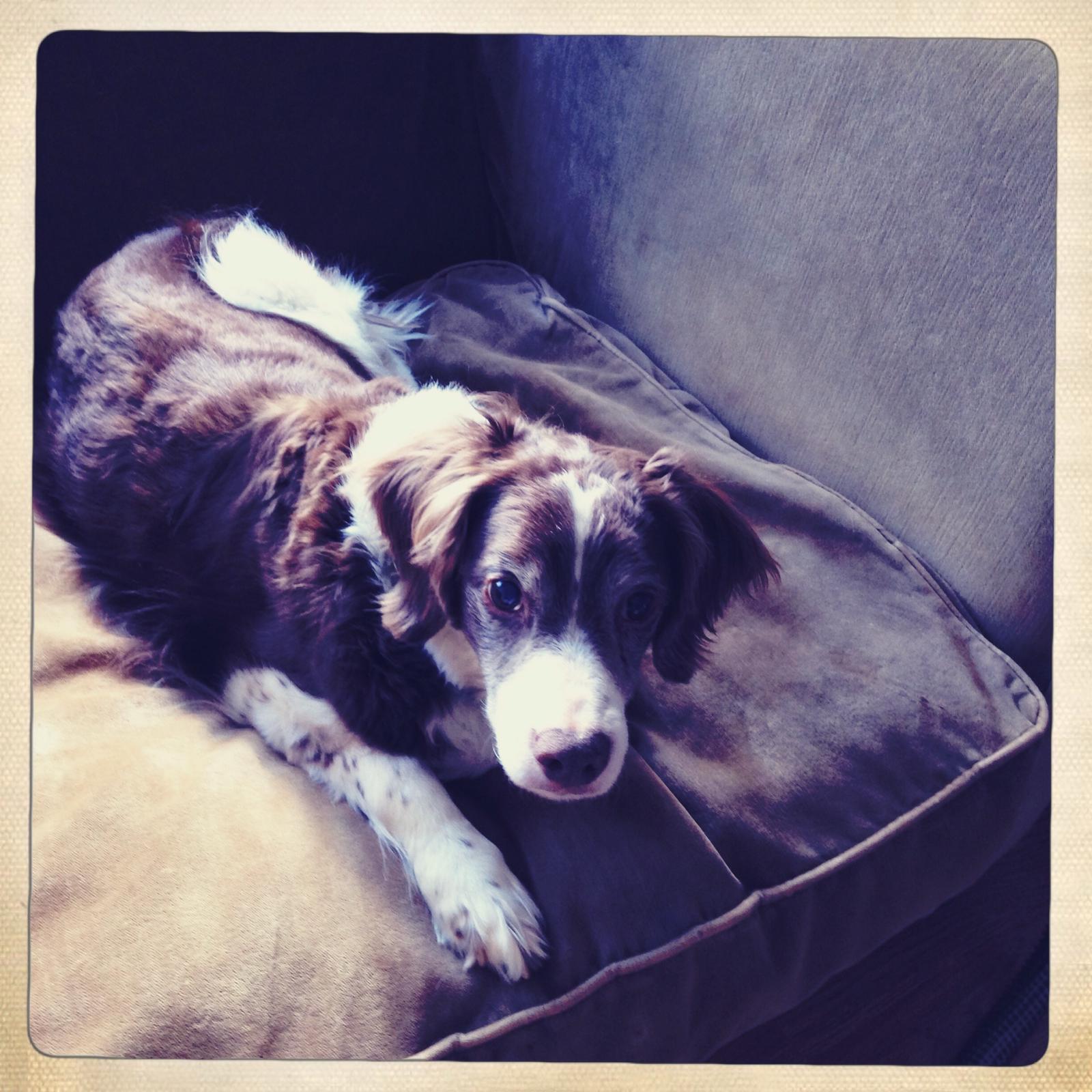 Alton was our second, named for the famous, local Food Network star Alton Brown, for his large amount of brown on his back. Alton was the pentultimate puppy buddy, he never let anything get him down. At around age 7, he developed an autoimmune condition known as SARDS, in which the body’s own immune system attacks and destroys the retinas leading to permanent blindness. Throughout that transition and for the rest of his life, Alton was both an inspiration to us all about turning life’s lemons into lemonade and a real trooper. A mentor to our foster Jessie, Alton would reliably, at 6 o’clock every day, hop down from our bed, go collect Jessie (also blind) and lead her to dinner.