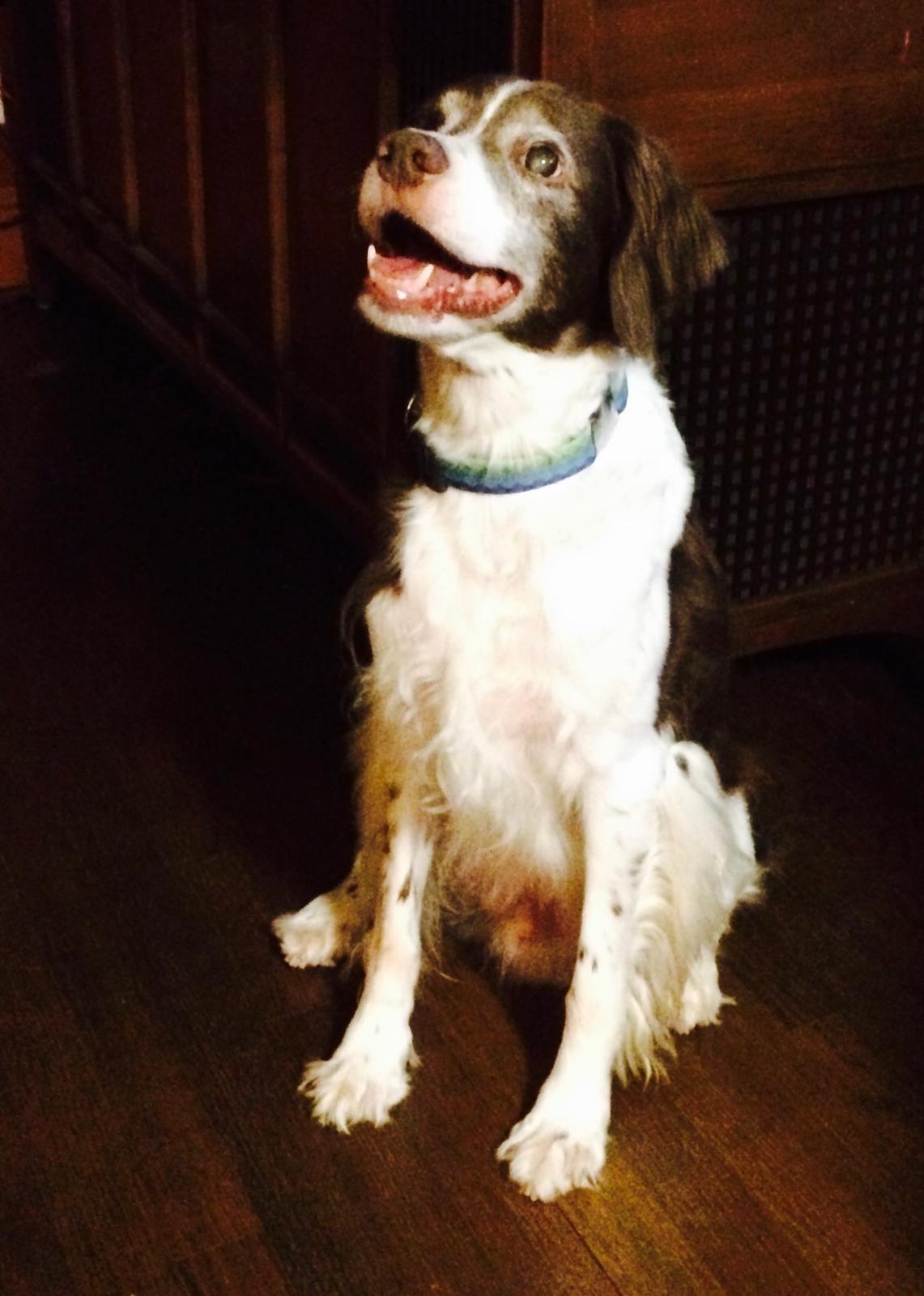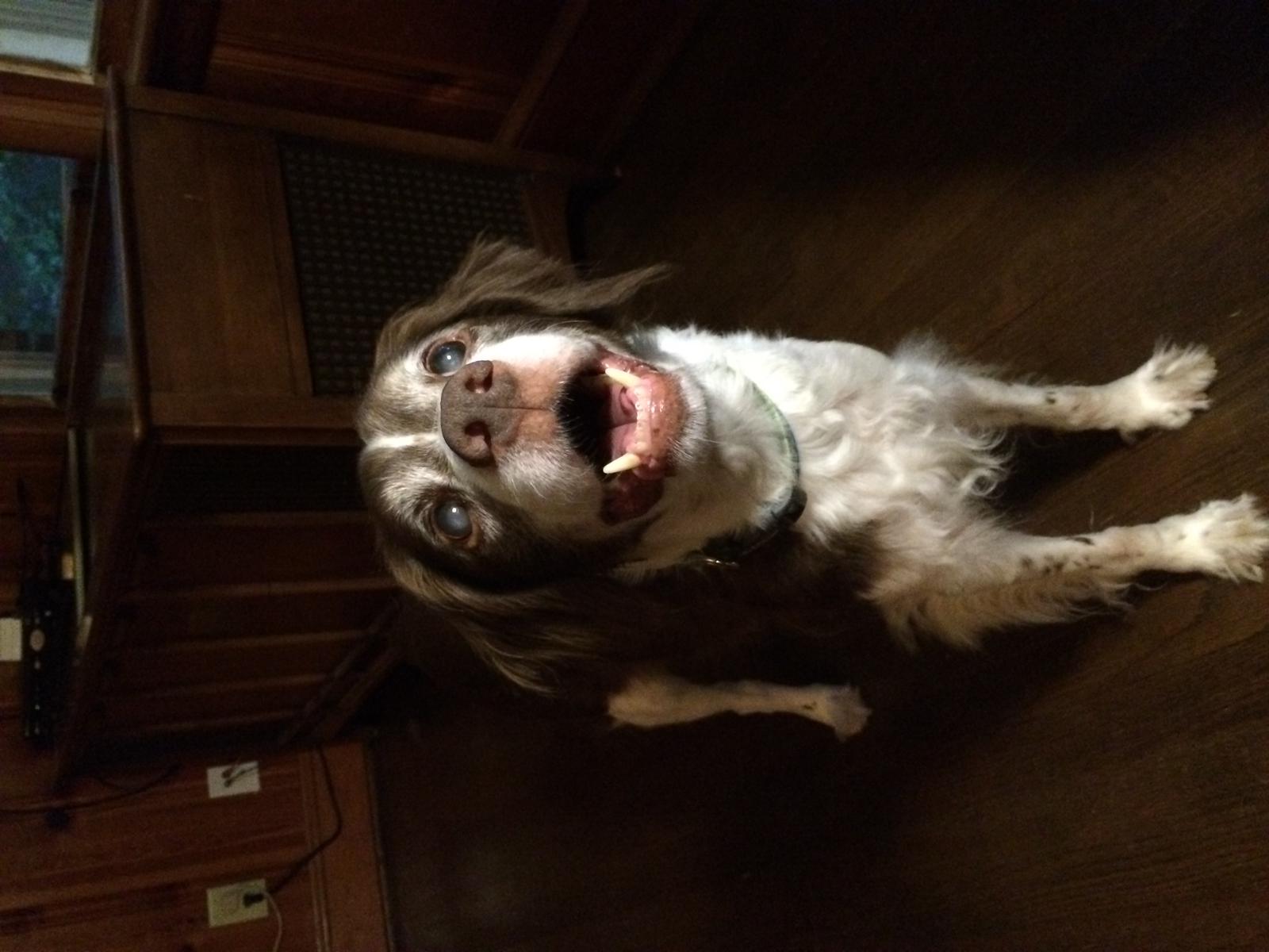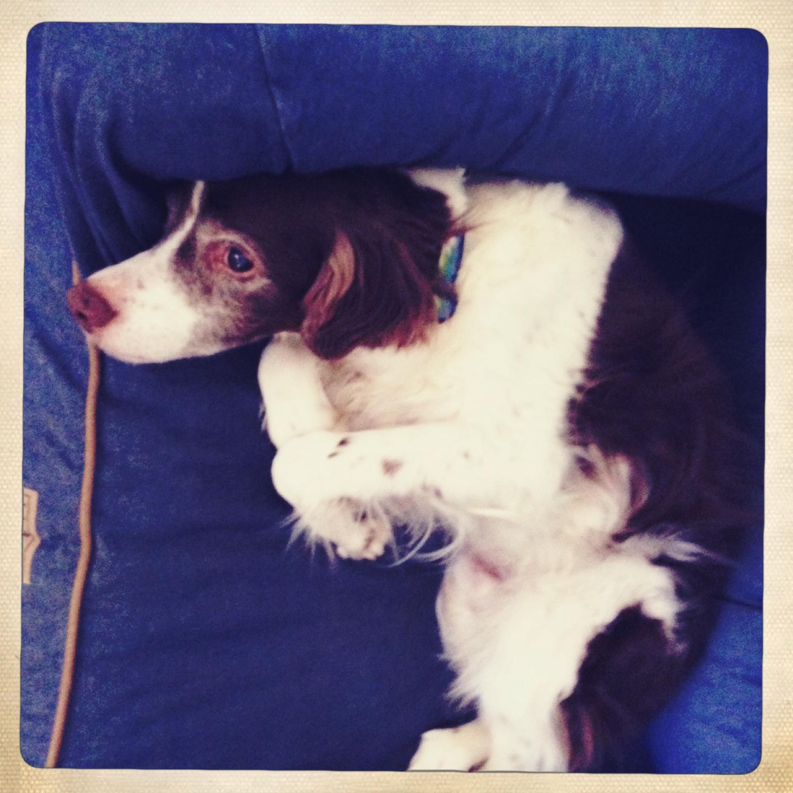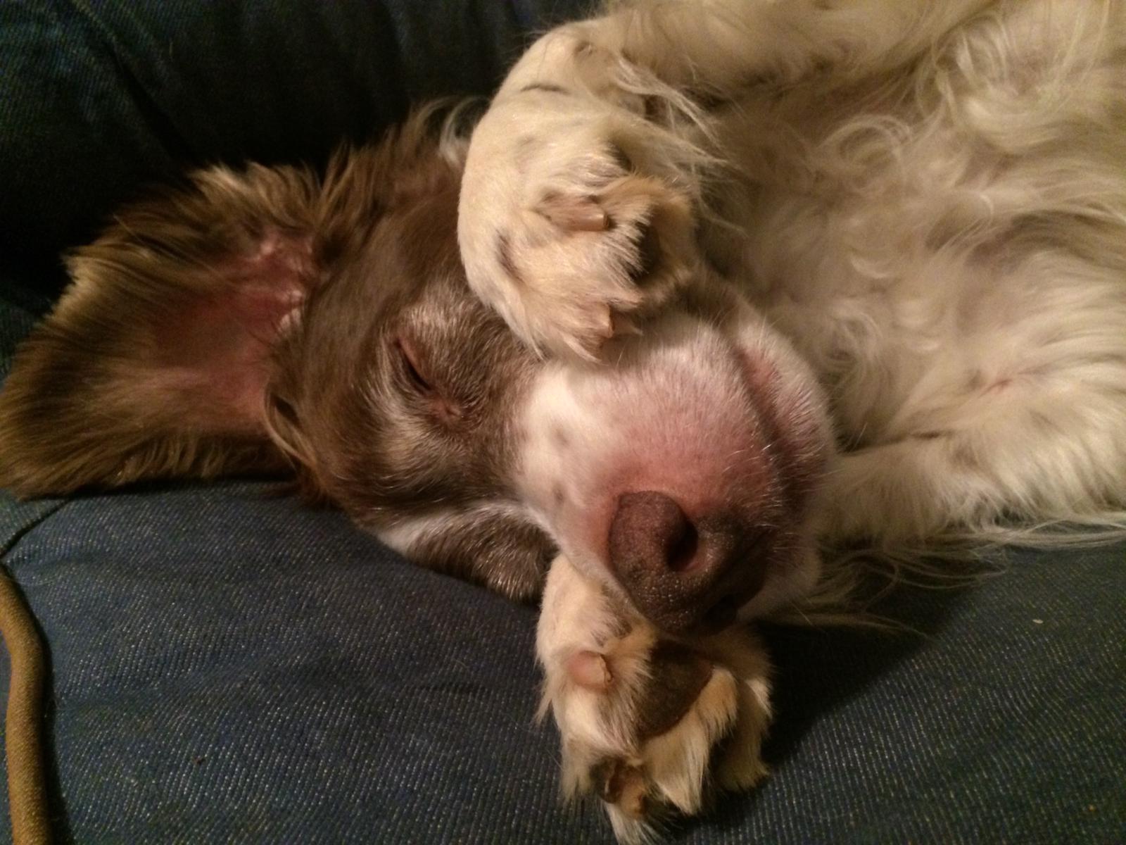Alton was our second, named for the famous, local Food Network star Alton Brown, for his large amount of brown on his back. Alton was the pentultimate puppy buddy, he never let anything get him down. At around age 7, he developed an autoimmune condition known as SARDS, in which the body’s own immune system attacks and destroys the retinas leading to permanent blindness. Throughout that transition and for the rest of his life, Alton was both an inspiration to us all about turning life’s lemons into lemonade and a real trooper. A mentor to our foster Jessie, Alton would reliably, at 6 o’clock every day, hop down from our bed, go collect Jessie (also blind) and lead her to dinner.