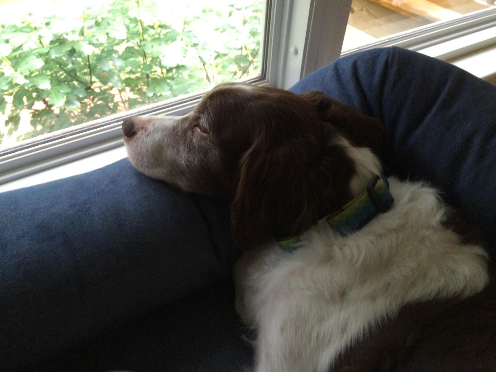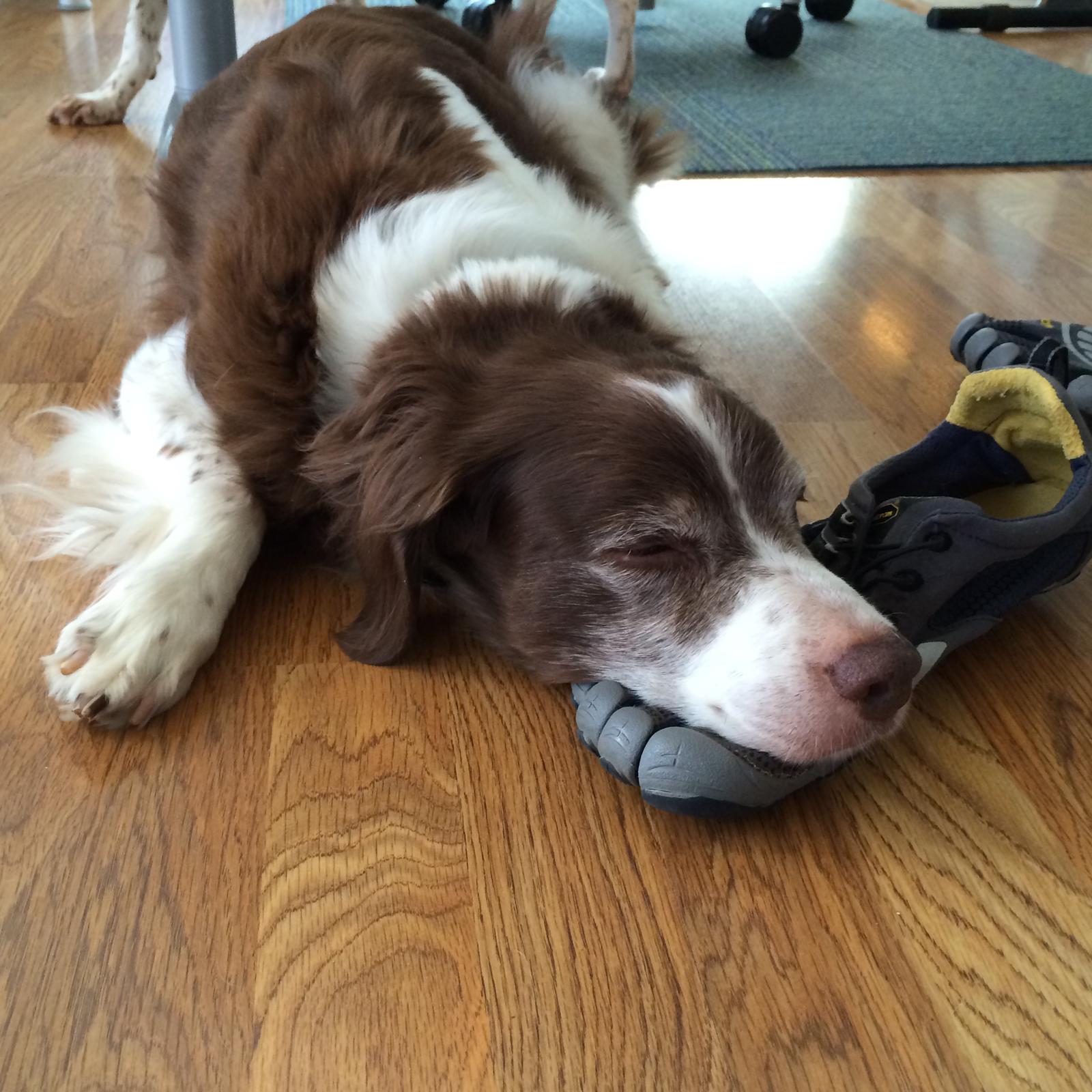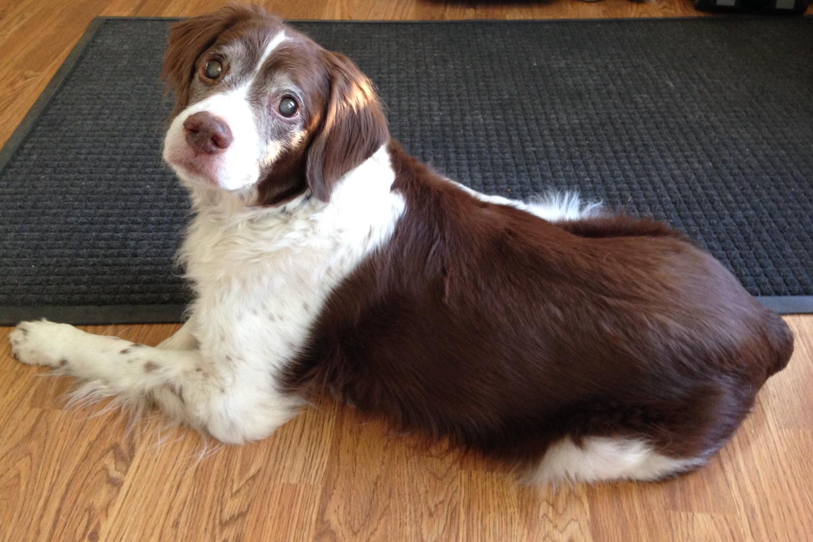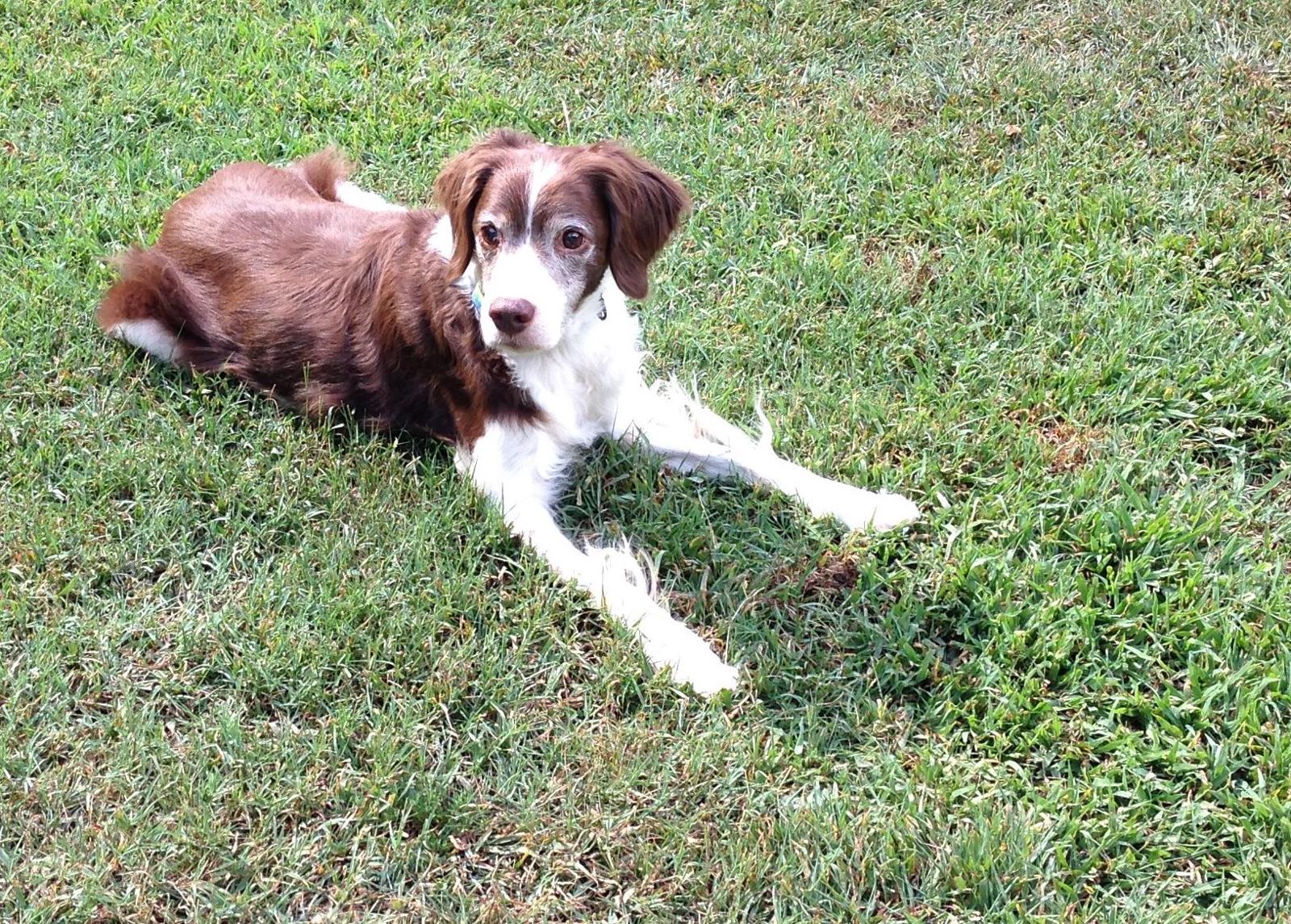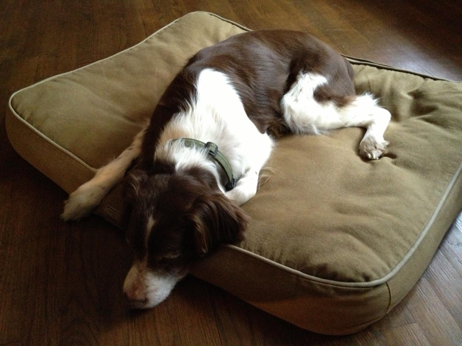 Alton was our second, named for the famous, local Food Network star Alton Brown, for his large amount of brown on his back. Alton was the pentultimate puppy buddy, he never let anything get him down. At around age 7, he developed an autoimmune condition known as SARDS, in which the body’s own immune system attacks and destroys the retinas leading to permanent blindness. Throughout that transition and for the rest of his life, Alton was both an inspiration to us all about turning life’s lemons into lemonade and a real trooper. A mentor to our foster Jessie, Alton would reliably, at 6 o’clock every day, hop down from our bed, go collect Jessie (also blind) and lead her to dinner.
