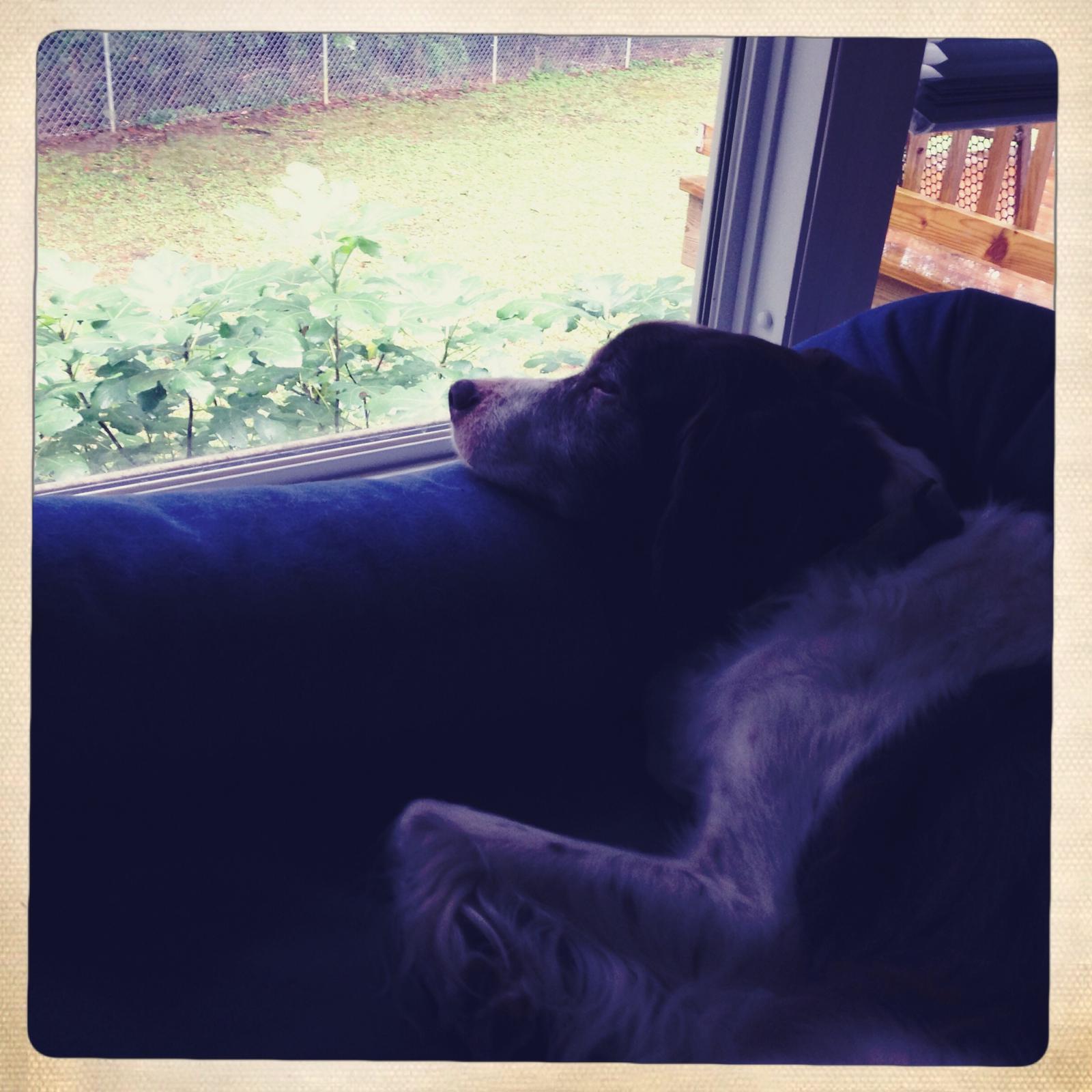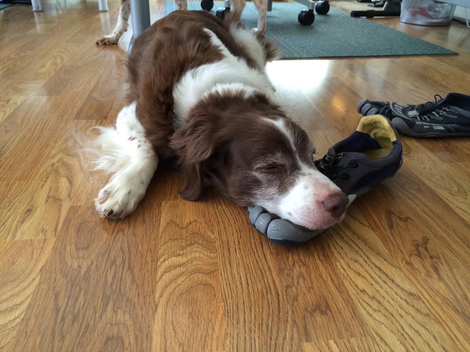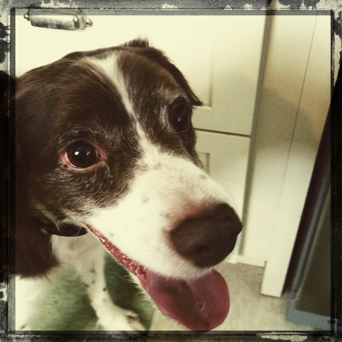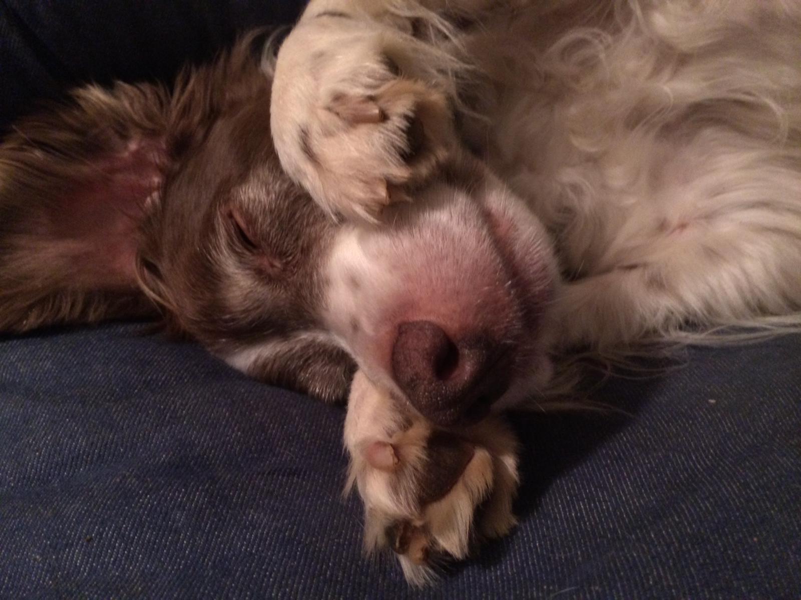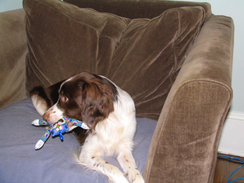 Alton was our second, named for the famous, local Food Network star Alton Brown, for his large amount of brown on his back. Alton was the pentultimate puppy buddy, he never let anything get him down. At around age 7, he developed an autoimmune condition known as SARDS, in which the body’s own immune system attacks and destroys the retinas leading to permanent blindness. Throughout that transition and for the rest of his life, Alton was both an inspiration to us all about turning life’s lemons into lemonade and a real trooper. A mentor to our foster Jessie, Alton would reliably, at 6 o’clock every day, hop down from our bed, go collect Jessie (also blind) and lead her to dinner.