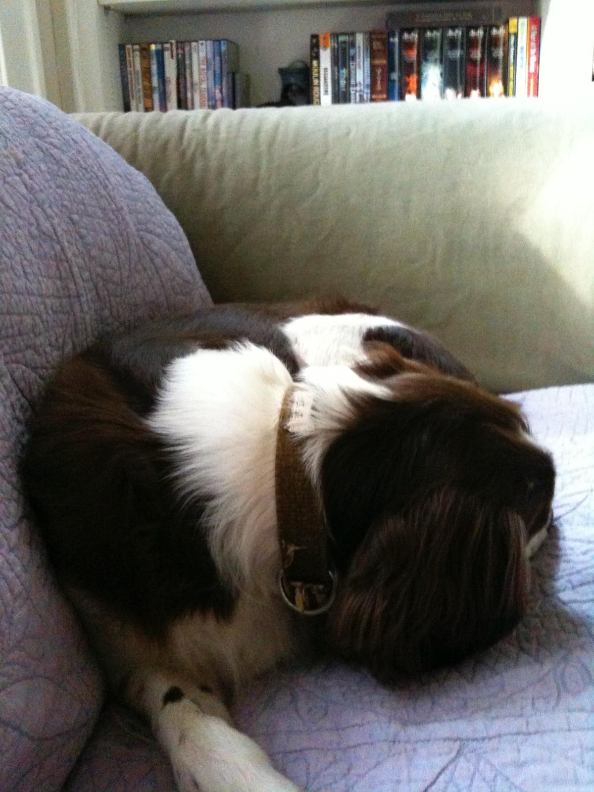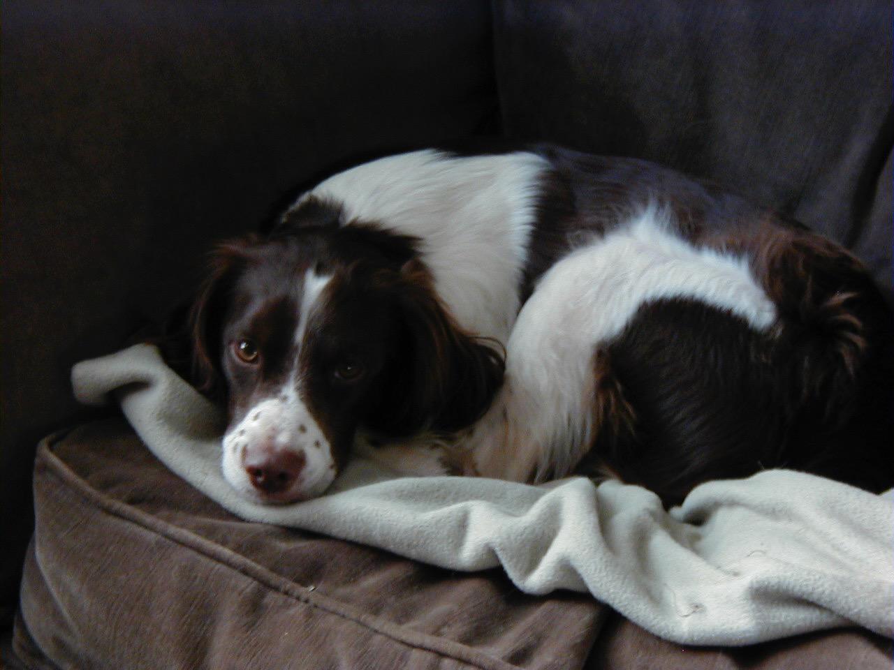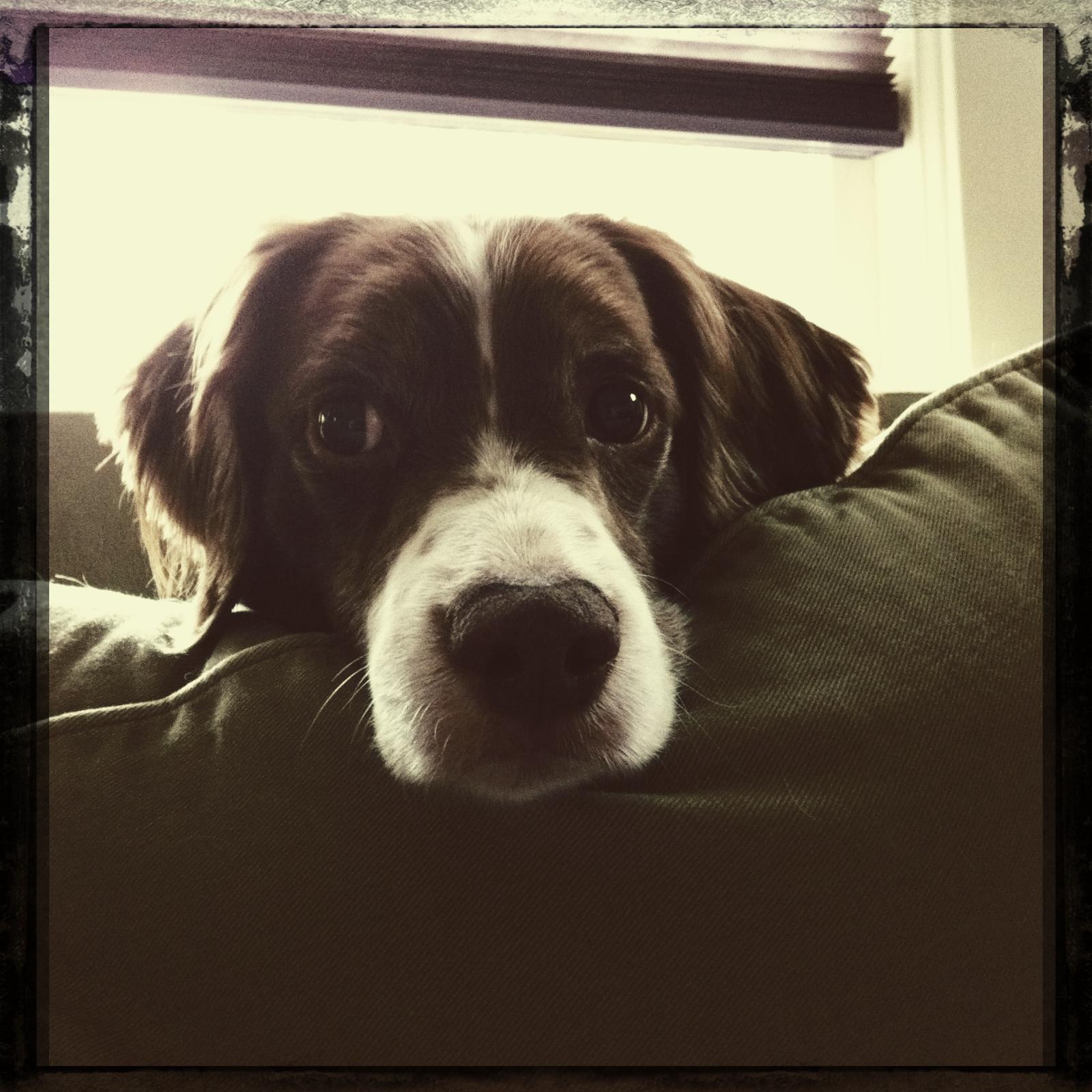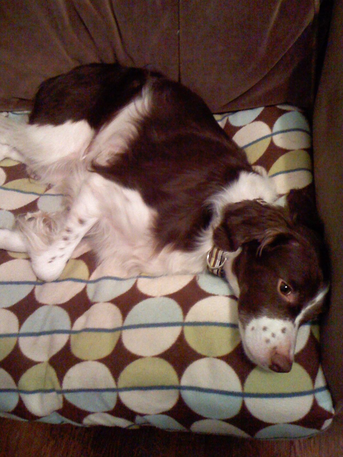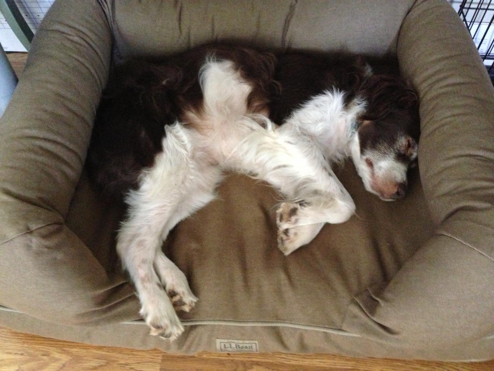 Alton was our second, named for the famous, local Food Network star Alton Brown, for his large amount of brown on his back. Alton was the pentultimate puppy buddy, he never let anything get him down. At around age 7, he developed an autoimmune condition known as SARDS, in which the body’s own immune system attacks and destroys the retinas leading to permanent blindness. Throughout that transition and for the rest of his life, Alton was both an inspiration to us all about turning life’s lemons into lemonade and a real trooper. A mentor to our foster Jessie, Alton would reliably, at 6 o’clock every day, hop down from our bed, go collect Jessie (also blind) and lead her to dinner.