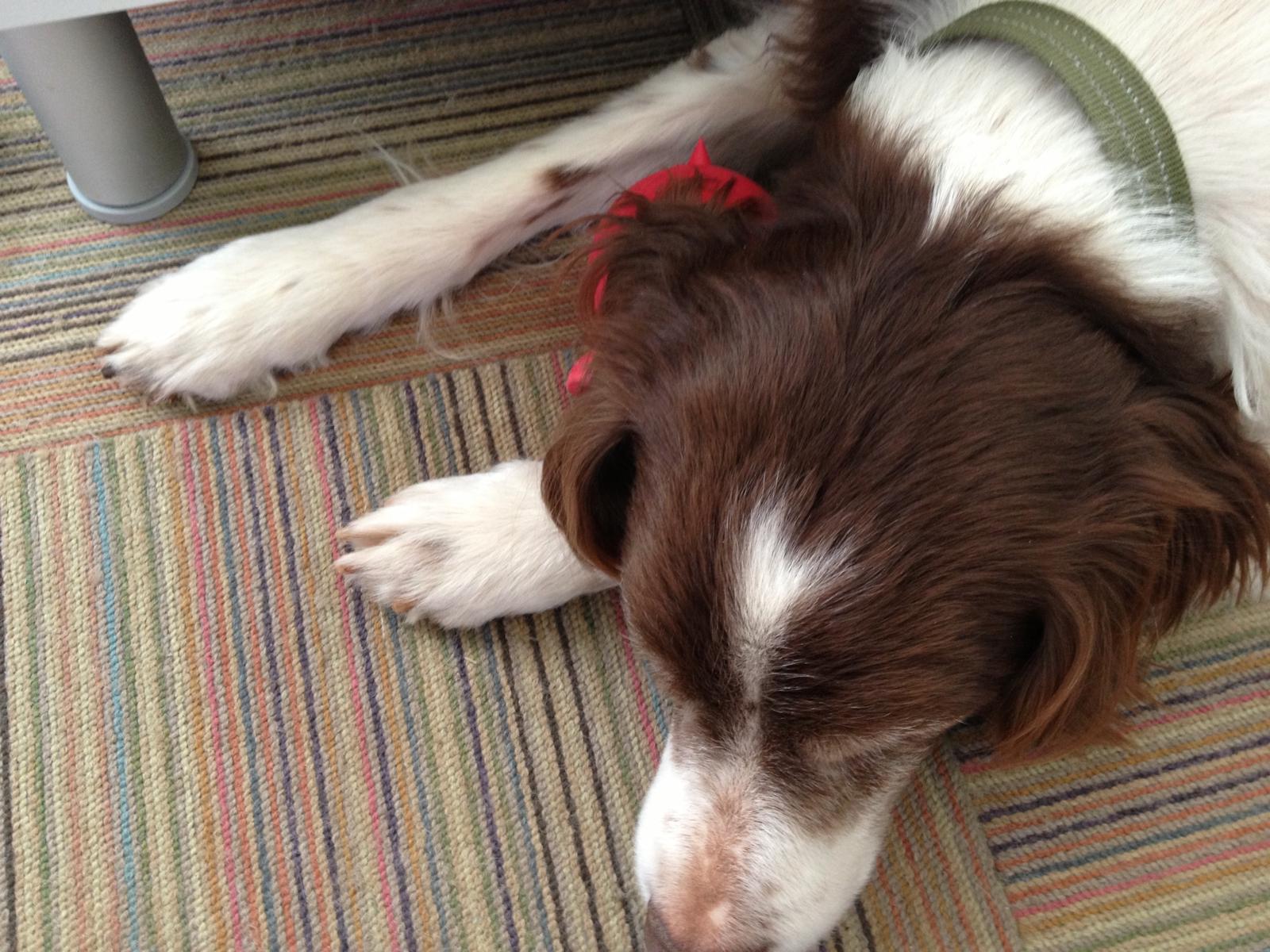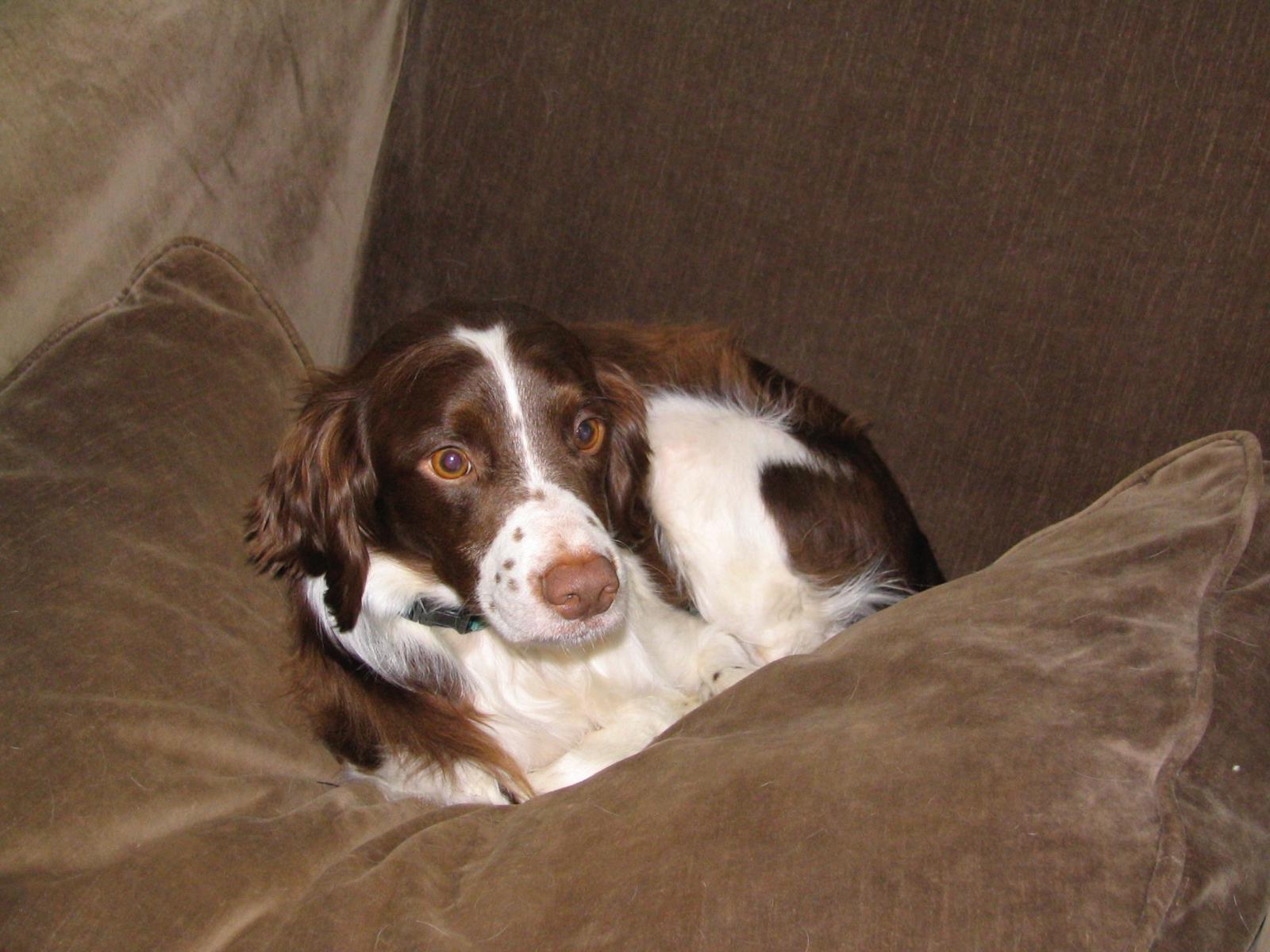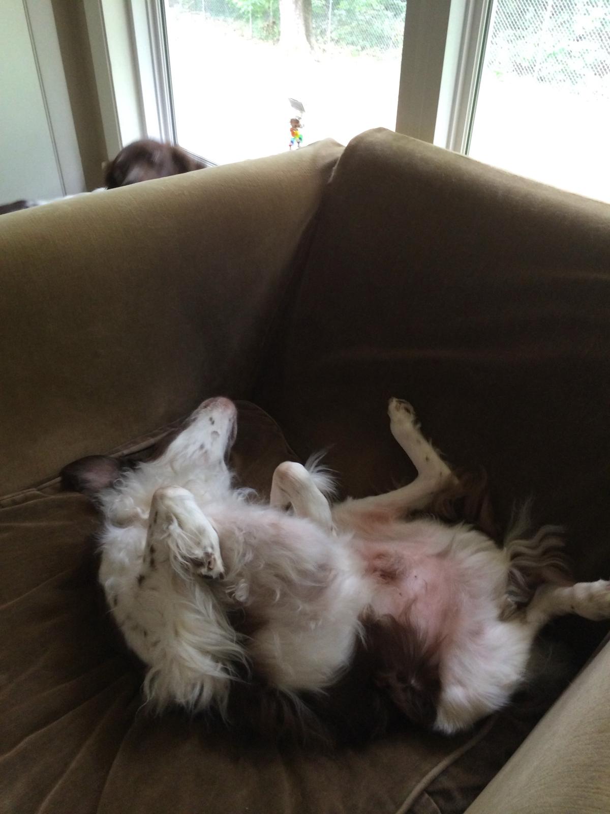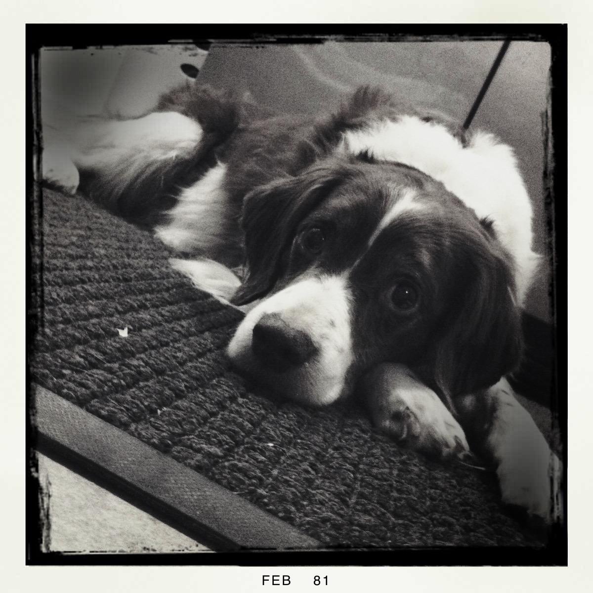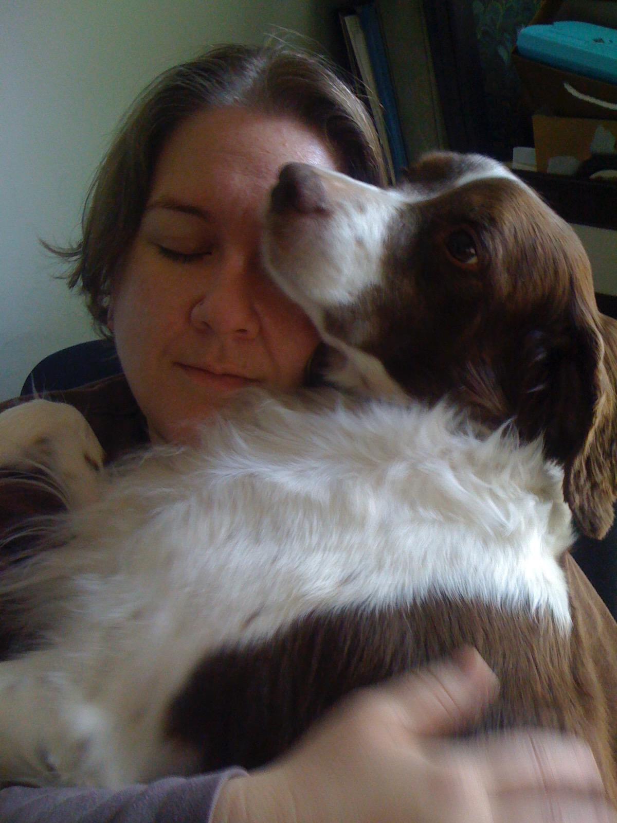Alton was our second, named for the famous, local Food Network star Alton Brown, for his large amount of brown on his back. Alton was the pentultimate puppy buddy, he never let anything get him down. At around age 7, he developed an autoimmune condition known as SARDS, in which the body’s own immune system attacks and destroys the retinas leading to permanent blindness. Throughout that transition and for the rest of his life, Alton was both an inspiration to us all about turning life’s lemons into lemonade and a real trooper. A mentor to our foster Jessie, Alton would reliably, at 6 o’clock every day, hop down from our bed, go collect Jessie (also blind) and lead her to dinner.