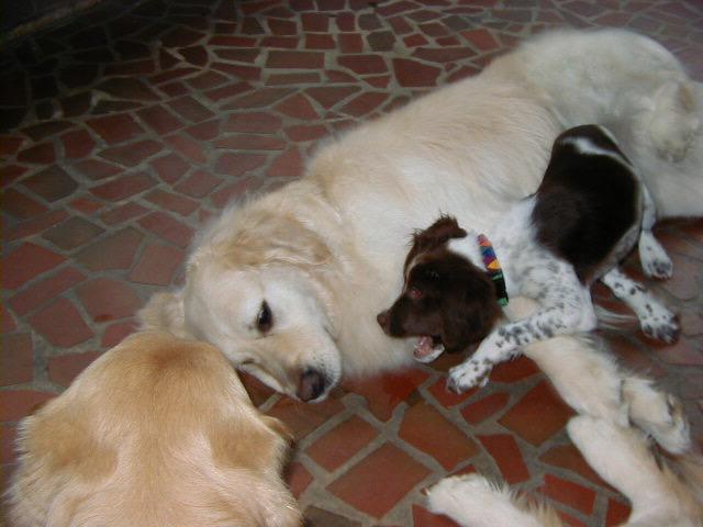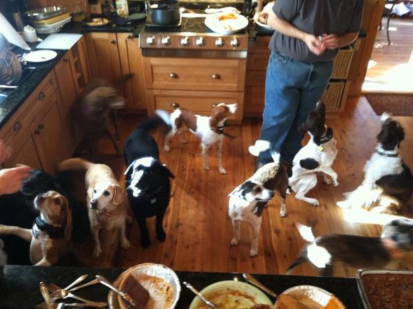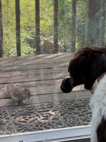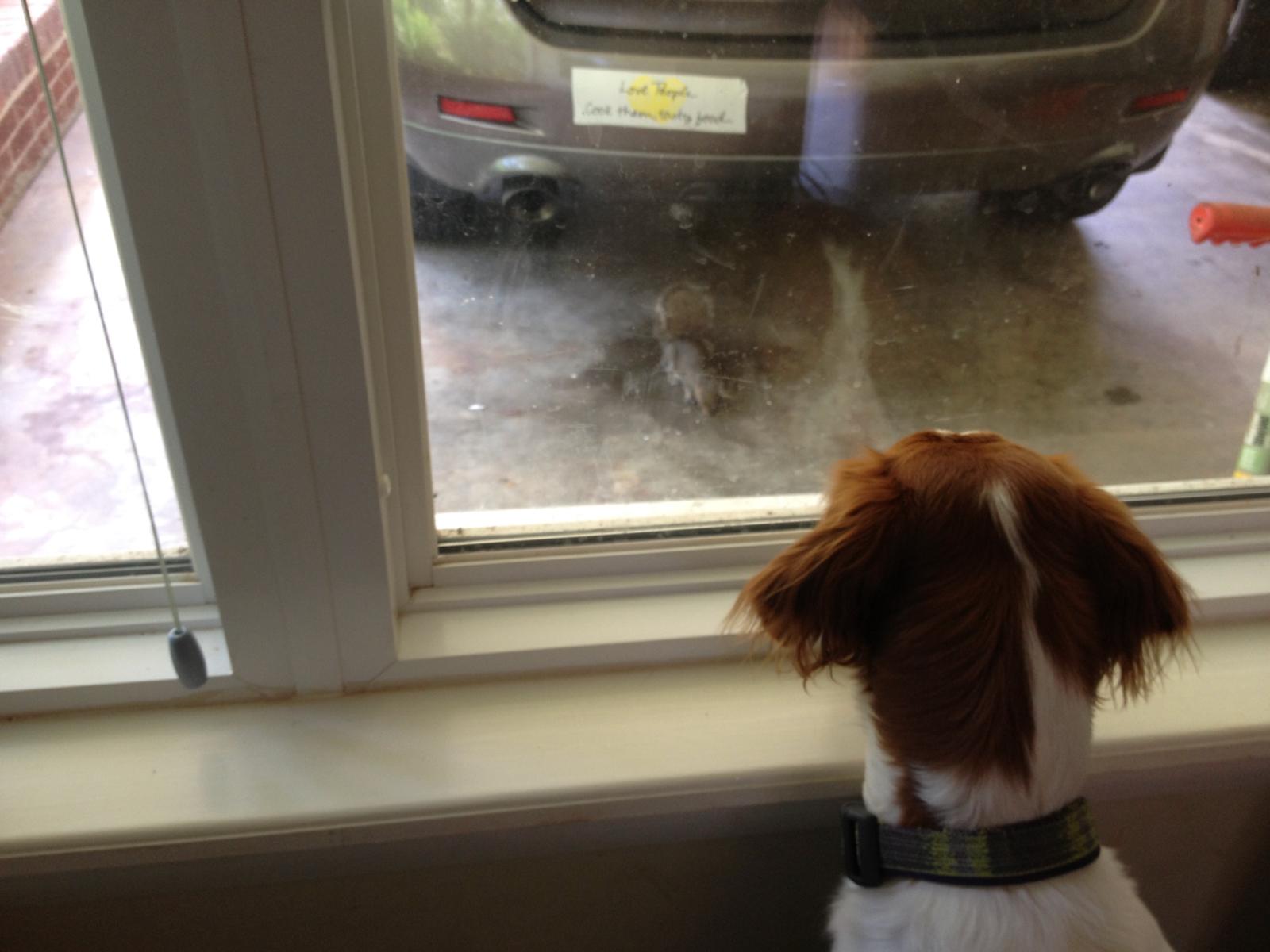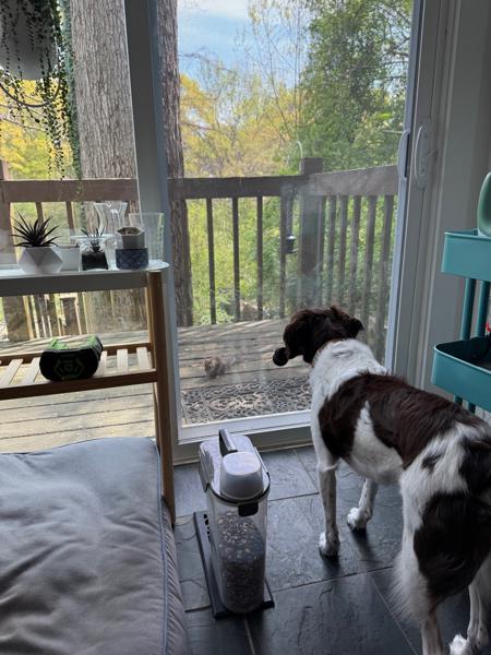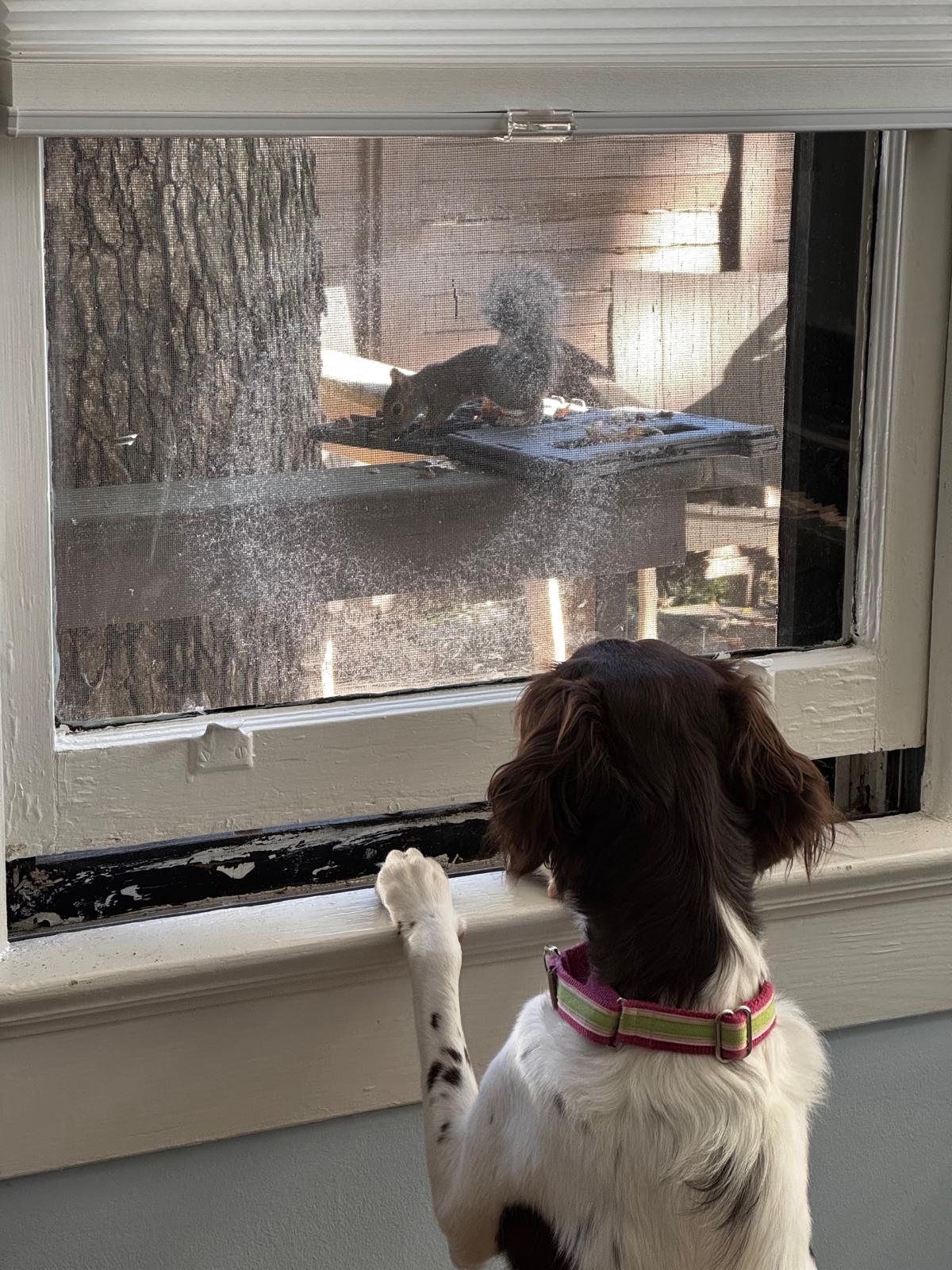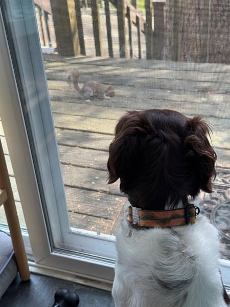The babies have made many friends - be they other dogs, other people, or outside visitors. Ella had a notable relationship with “Mr. Toad” who would come courting every night one summer at about 830pm. She would wait for him at the back door and get super excited when he showed up. They would sit there and stare at each other for an hour or 2, before Mr. Toad went home for the night. Bridget loves squirrels, or l’ecuirreil as she prefers they be called. “Achey Rey” visits the birdfeeder regularly and sits outside the window, taunting her as he hops from tree to tree.