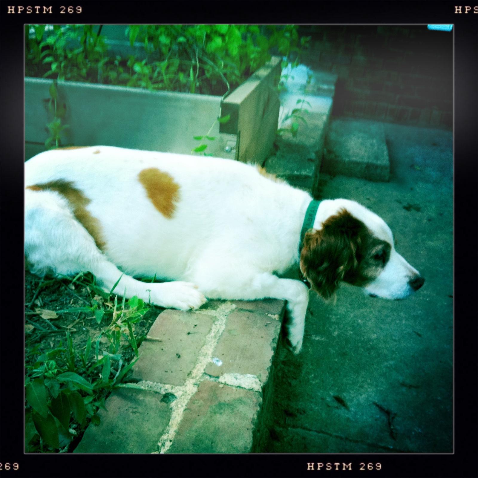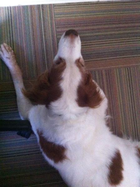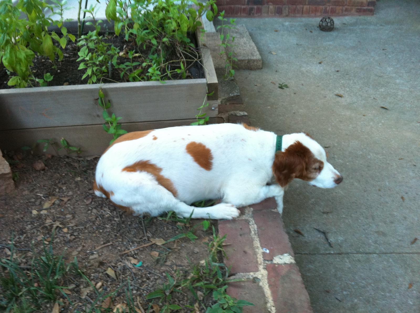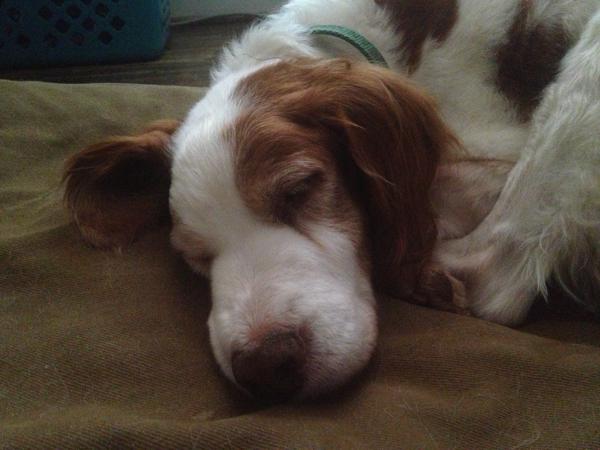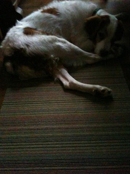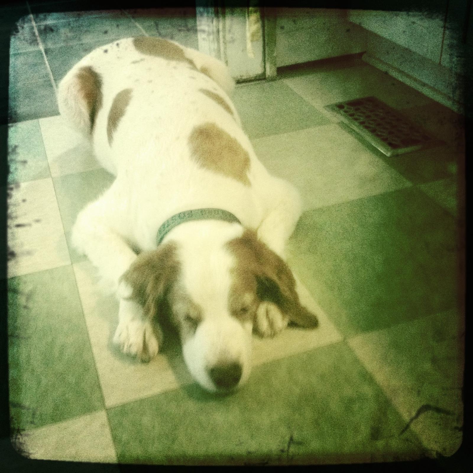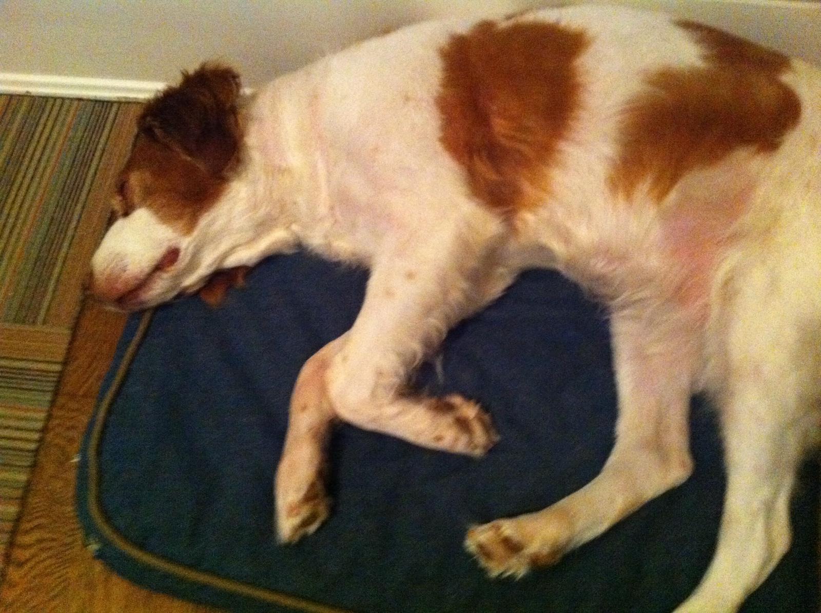 Jessie came to us from a farm in the central United States. She, like Alton, had grown blind and her owners did not know what to do with a hunting dog that could not see. They left her in her pen, where she chewed down her teeth trying to get out. They fed her, but she had so little exercise, that she gained weight and was barely ambulatory when she arrived in Atlanta via the shuttle. Over the next several years, Collin worked with her to rebuild her strength, reduce her excess weight. Alton, our blind dog, also made an effort to help her navigate the house. She never lost her desire for food, as many of these pictures show. She was a special senior dog addition to our family; something we very much recommend.