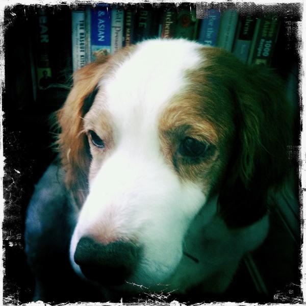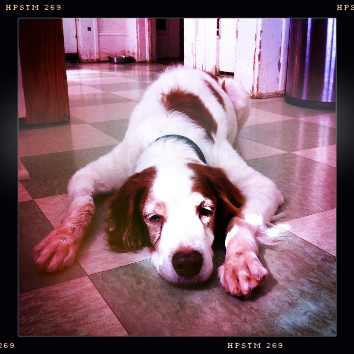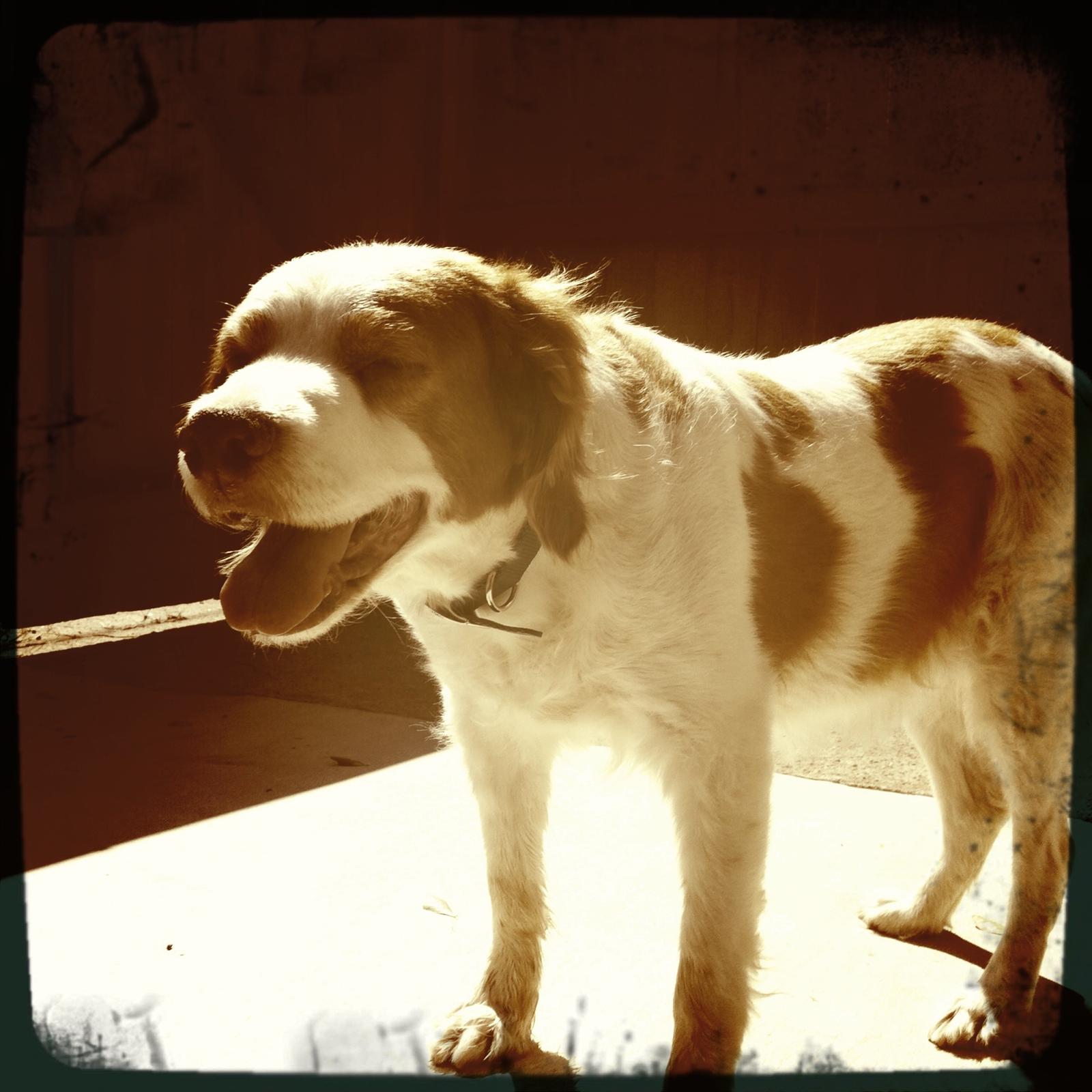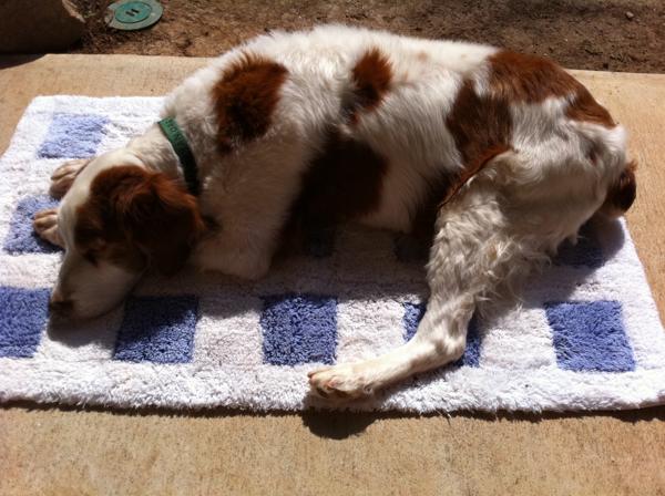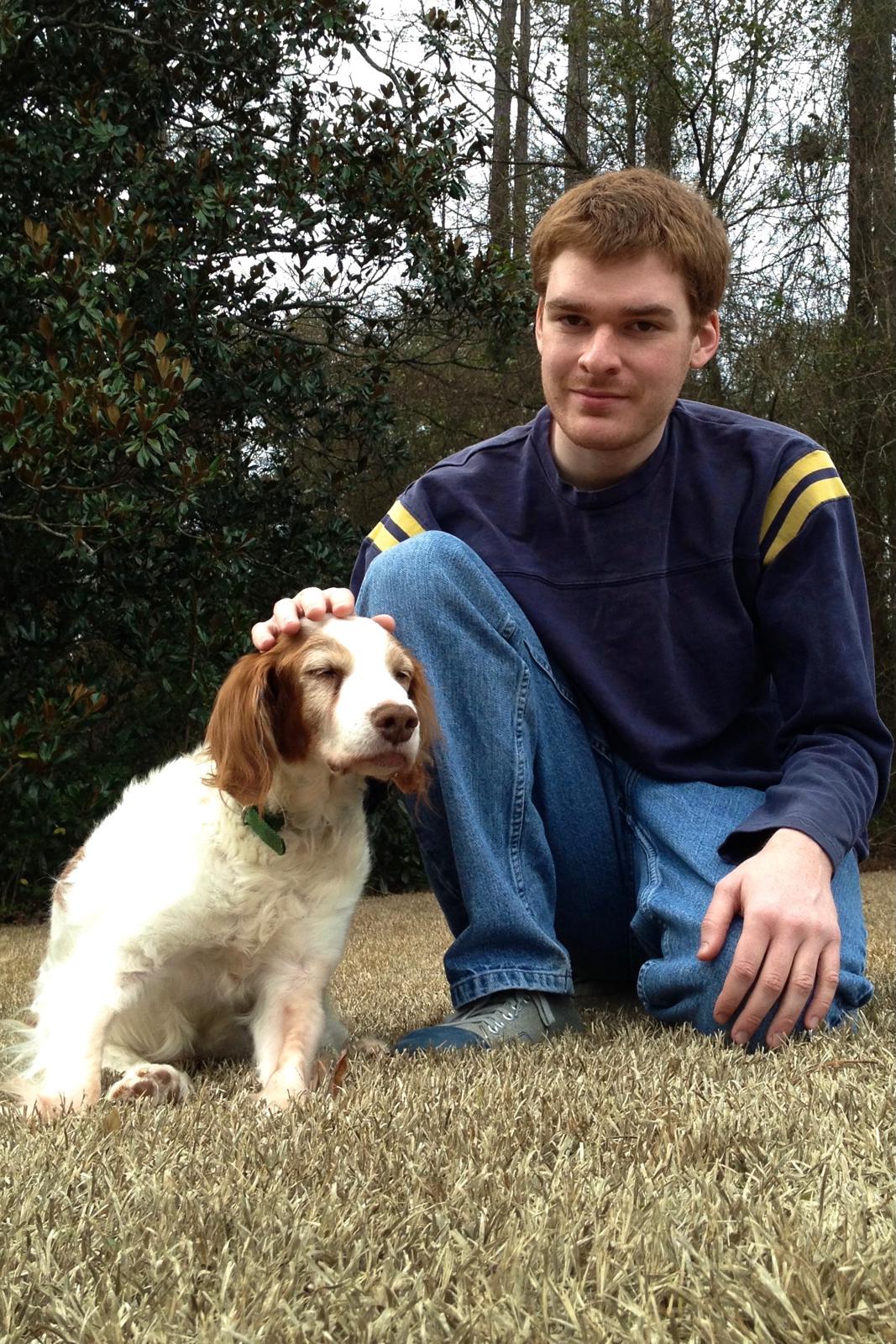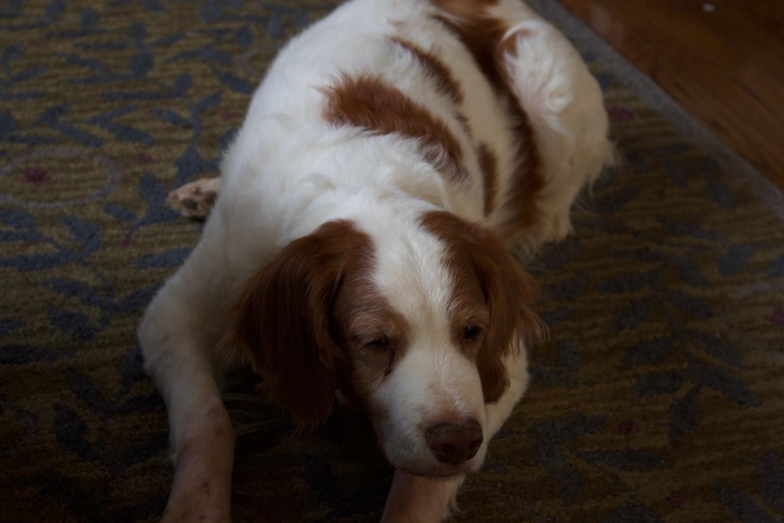 Jessie came to us from a farm in the central United States. She, like Alton, had grown blind and her owners did not know what to do with a hunting dog that could not see. They left her in her pen, where she chewed down her teeth trying to get out. They fed her, but she had so little exercise, that she gained weight and was barely ambulatory when she arrived in Atlanta via the shuttle. Over the next several years, Collin worked with her to rebuild her strength, reduce her excess weight. Alton, our blind dog, also made an effort to help her navigate the house. She never lost her desire for food, as many of these pictures show. She was a special senior dog addition to our family; something we very much recommend.