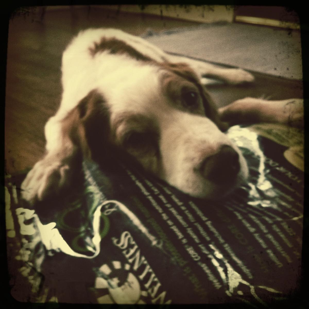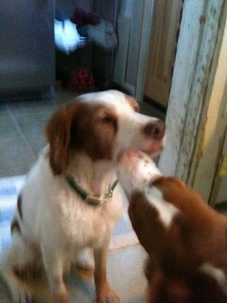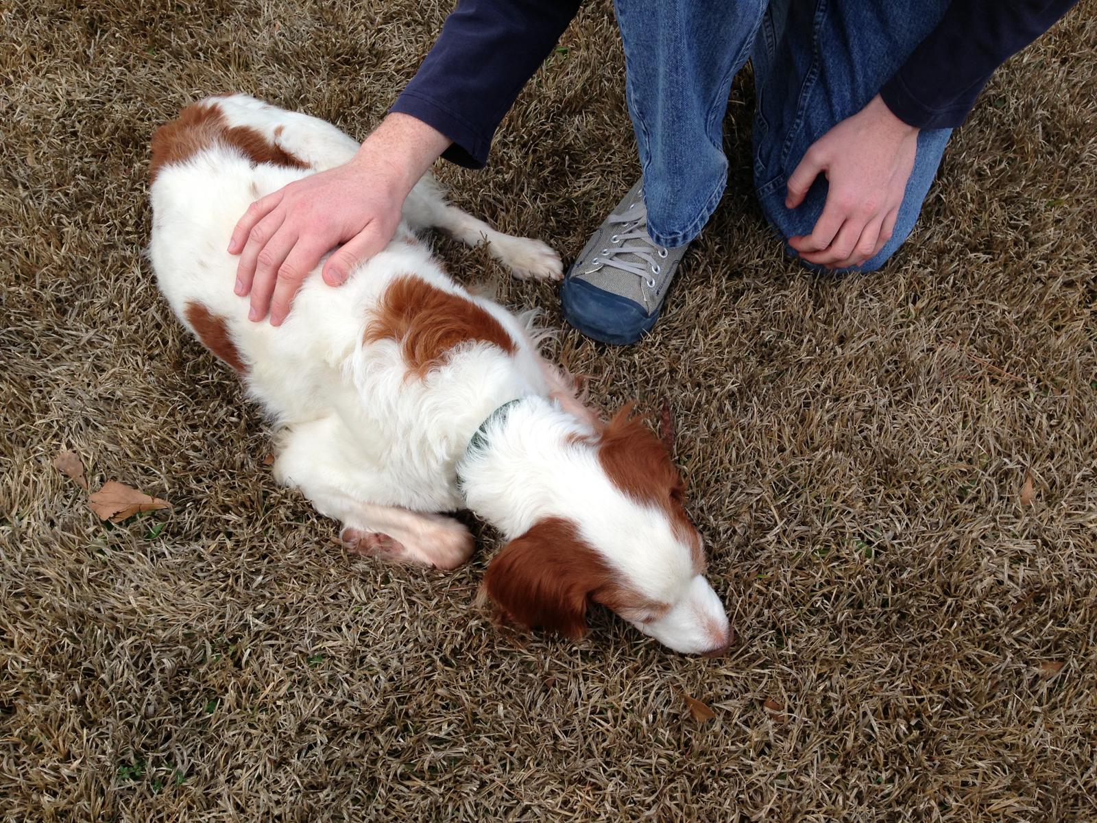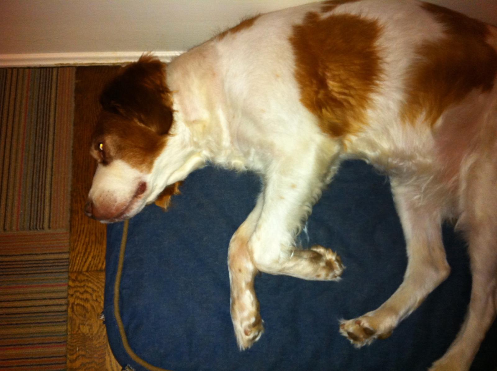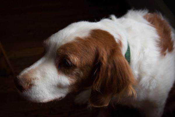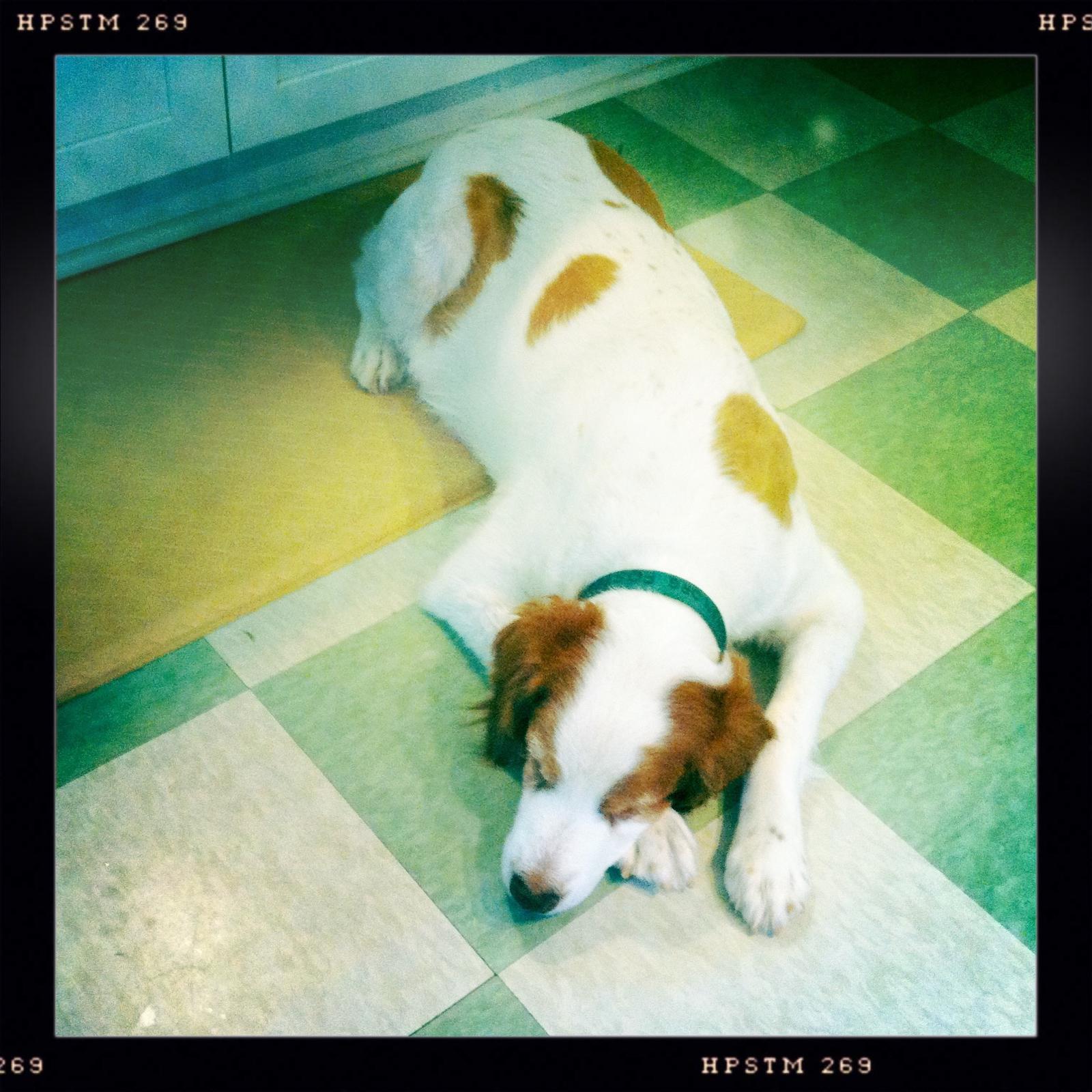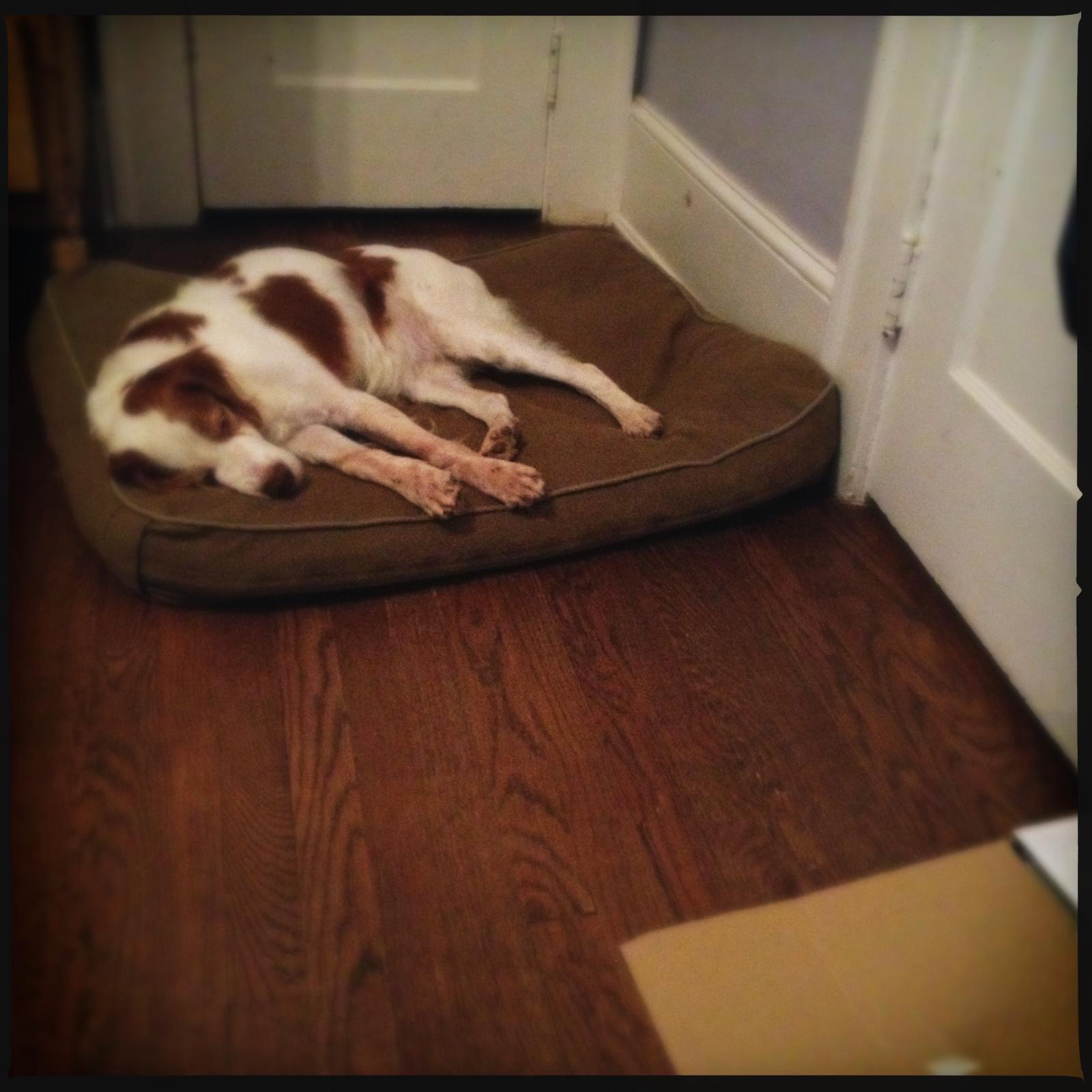 Jessie came to us from a farm in the central United States. She, like Alton, had grown blind and her owners did not know what to do with a hunting dog that could not see. They left her in her pen, where she chewed down her teeth trying to get out. They fed her, but she had so little exercise, that she gained weight and was barely ambulatory when she arrived in Atlanta via the shuttle. Over the next several years, Collin worked with her to rebuild her strength, reduce her excess weight. Alton, our blind dog, also made an effort to help her navigate the house. She never lost her desire for food, as many of these pictures show. She was a special senior dog addition to our family; something we very much recommend.