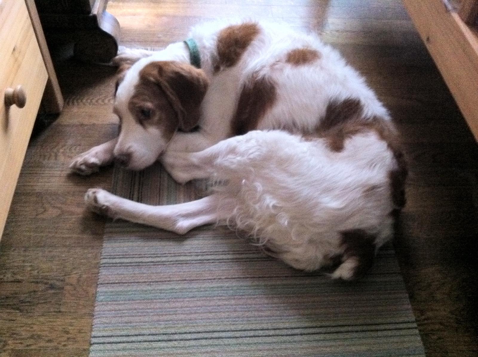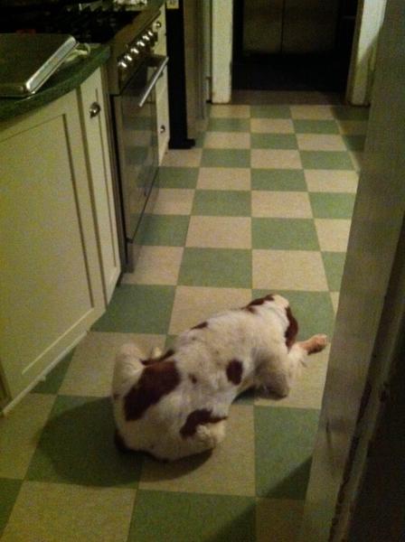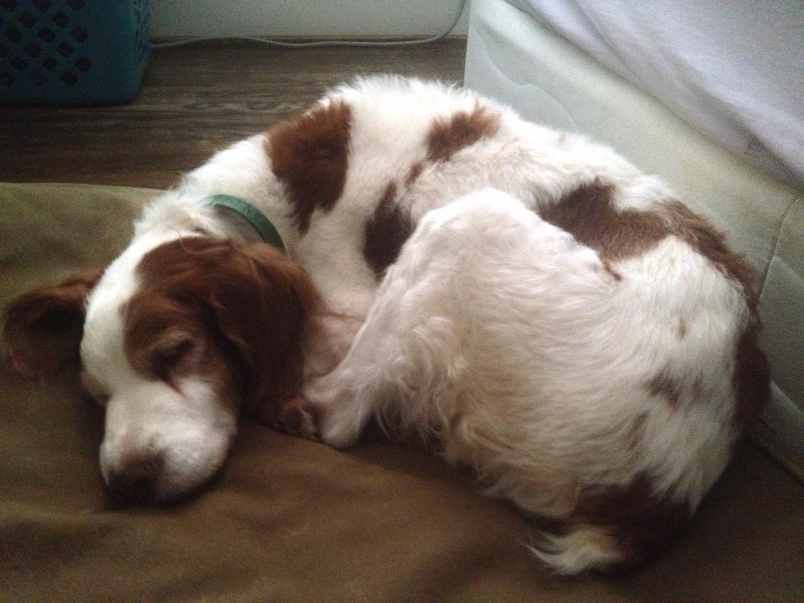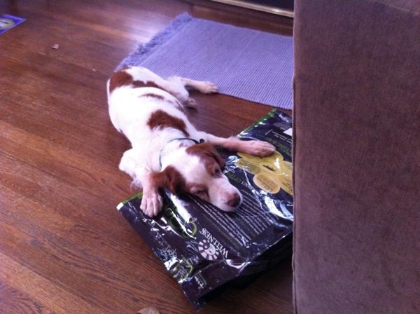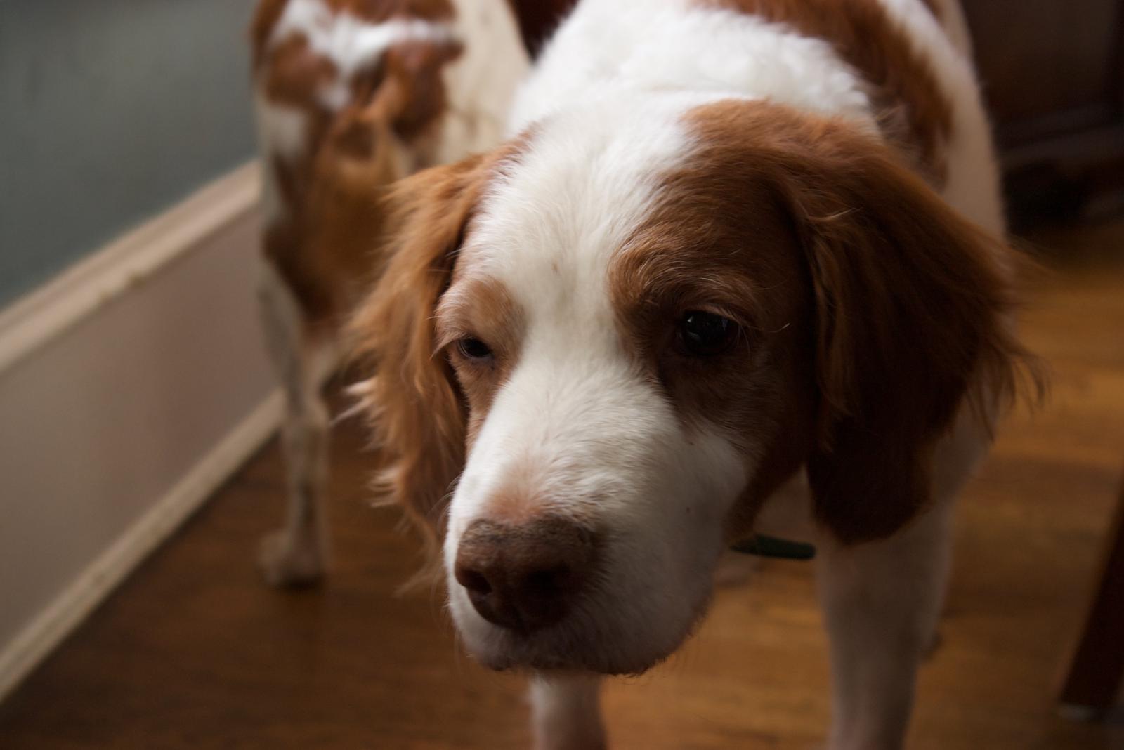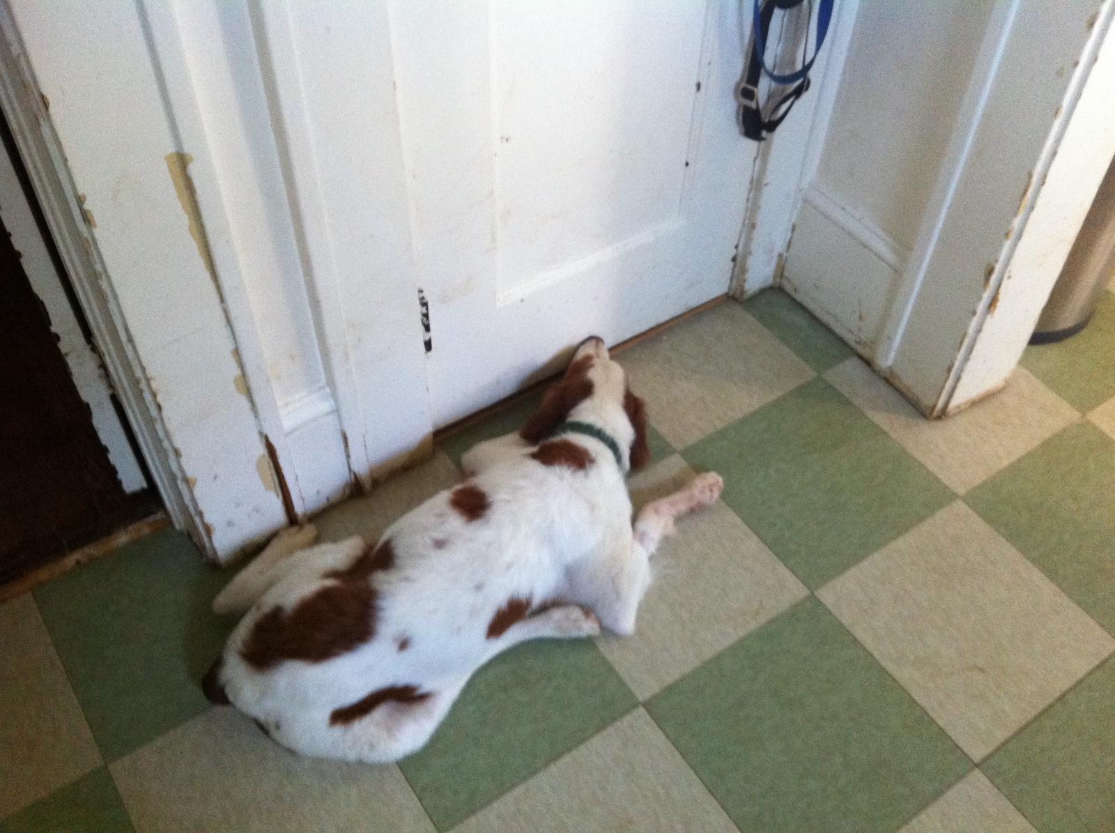 Jessie came to us from a farm in the central United States. She, like Alton, had grown blind and her owners did not know what to do with a hunting dog that could not see. They left her in her pen, where she chewed down her teeth trying to get out. They fed her, but she had so little exercise, that she gained weight and was barely ambulatory when she arrived in Atlanta via the shuttle. Over the next several years, Collin worked with her to rebuild her strength, reduce her excess weight. Alton, our blind dog, also made an effort to help her navigate the house. She never lost her desire for food, as many of these pictures show. She was a special senior dog addition to our family; something we very much recommend.