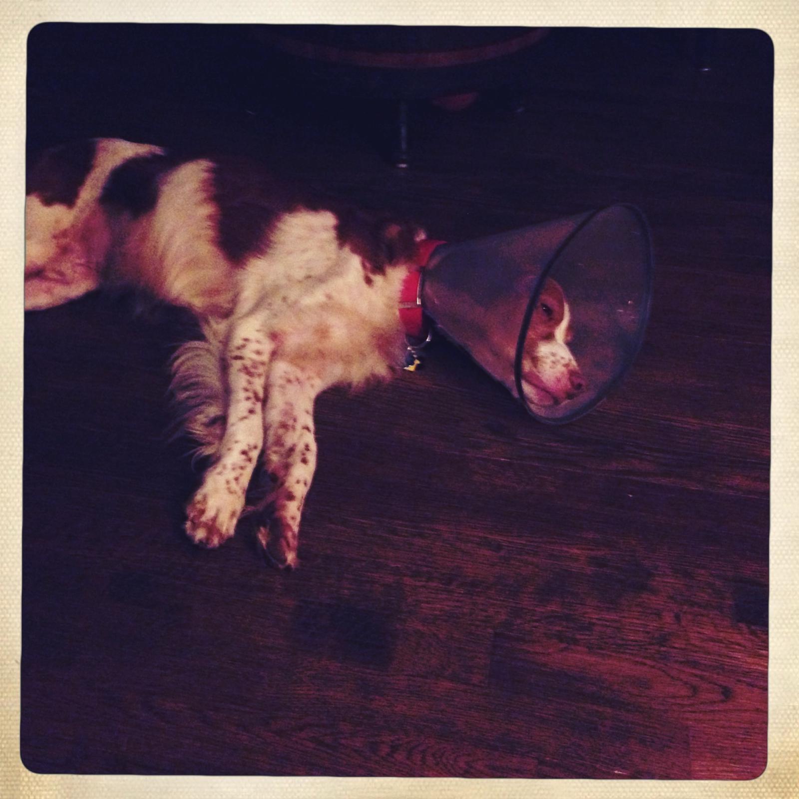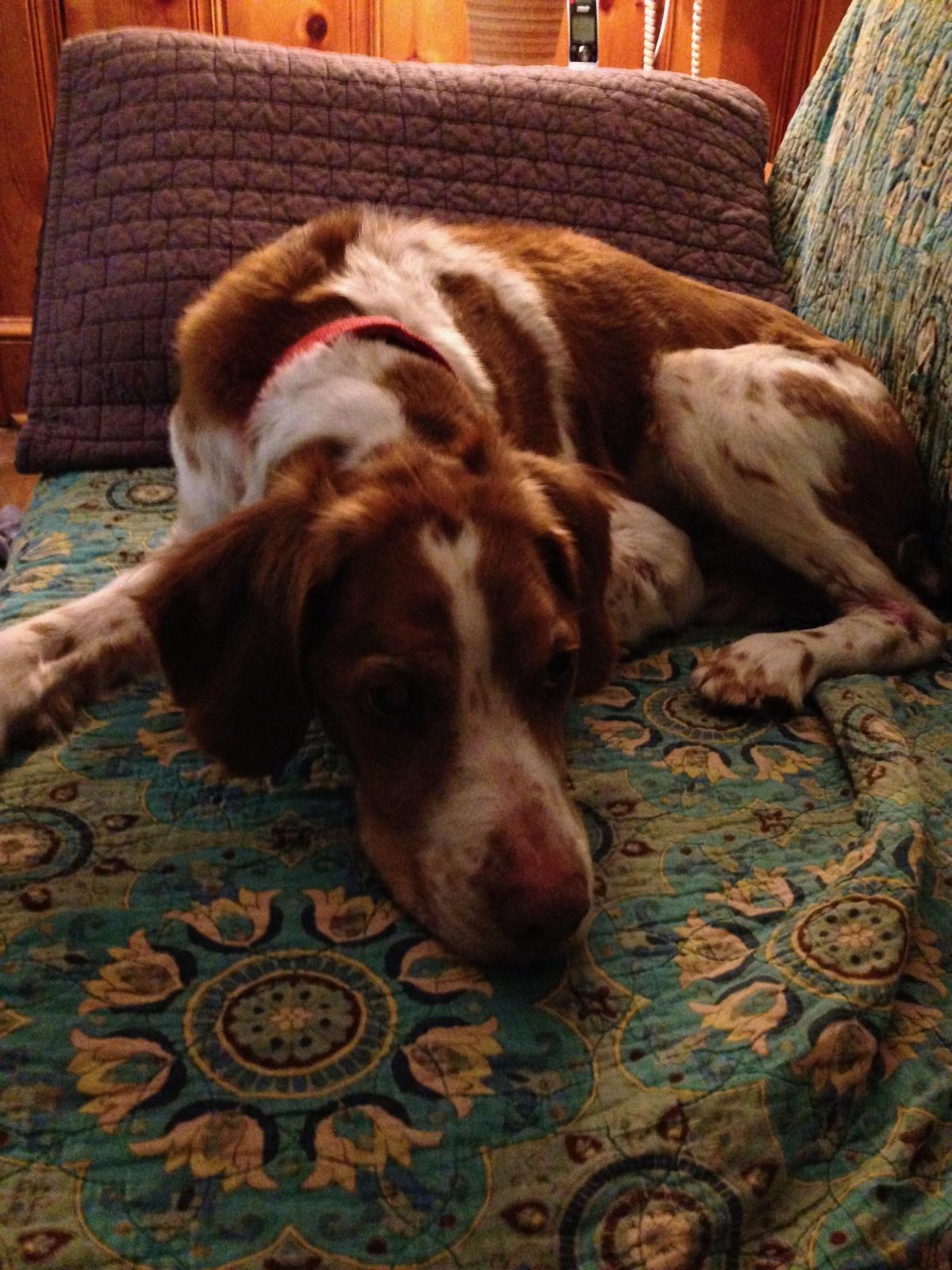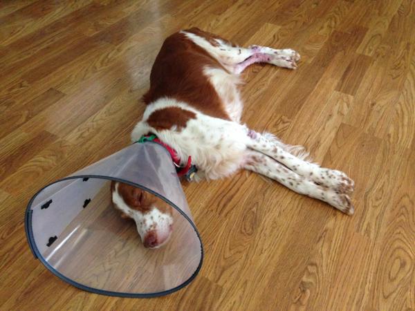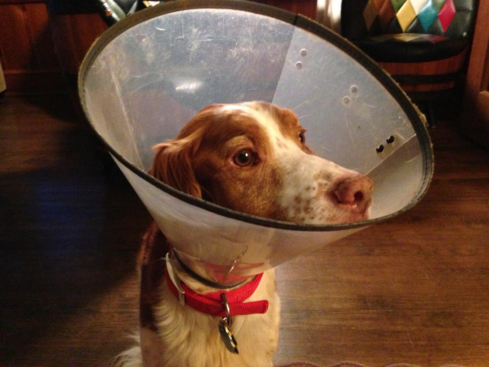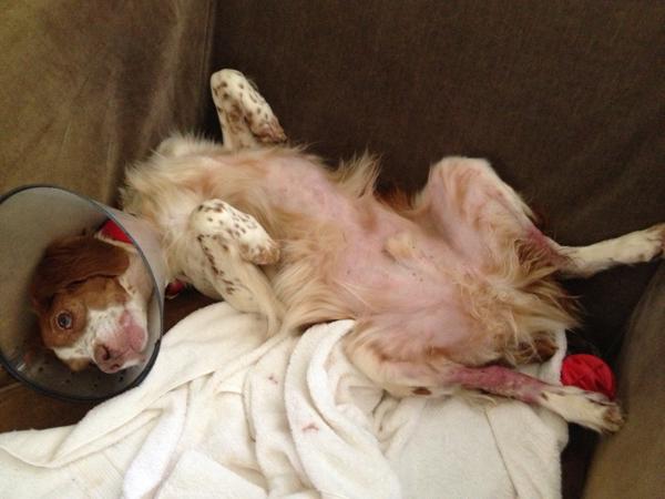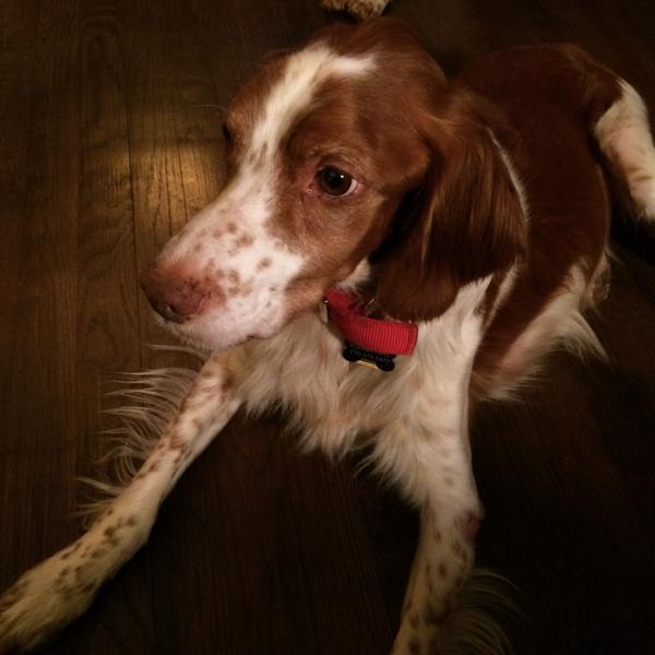 Riley (aka “Riley Cone”) was a temporary placement from NBRAN. Originally suspected of suffering intense flea strike on his buttocks, legs, and back, doctors at UGA Veterinary Clinic identified a food allergy. For the first half of his stay with us, Riley had to wear a cone of shame; he did not like it, though he did come to tolerate it by the time he was able to remove it for good. Once he was placed on a hypoallergenic kangaroo-based food, his lesions and sores cleared up and he was cone free. He was subsequently placed in a forever home.